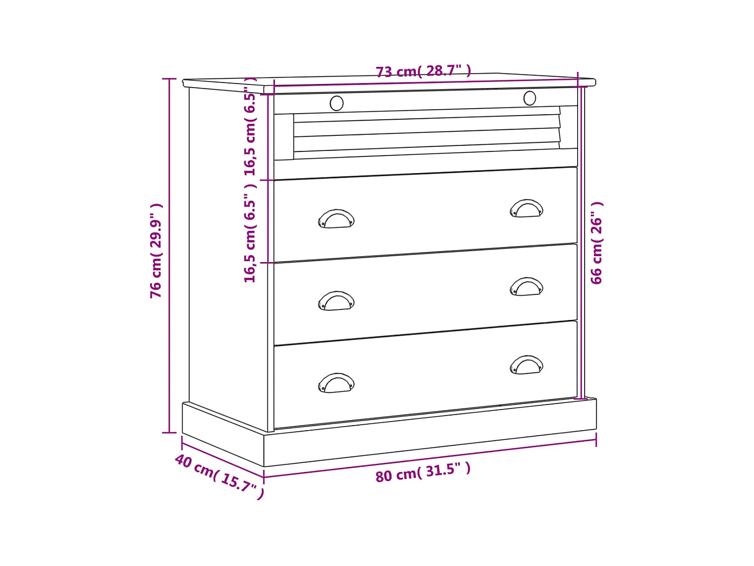 Commode VIGO 80x40x76 cm bois massif de pin