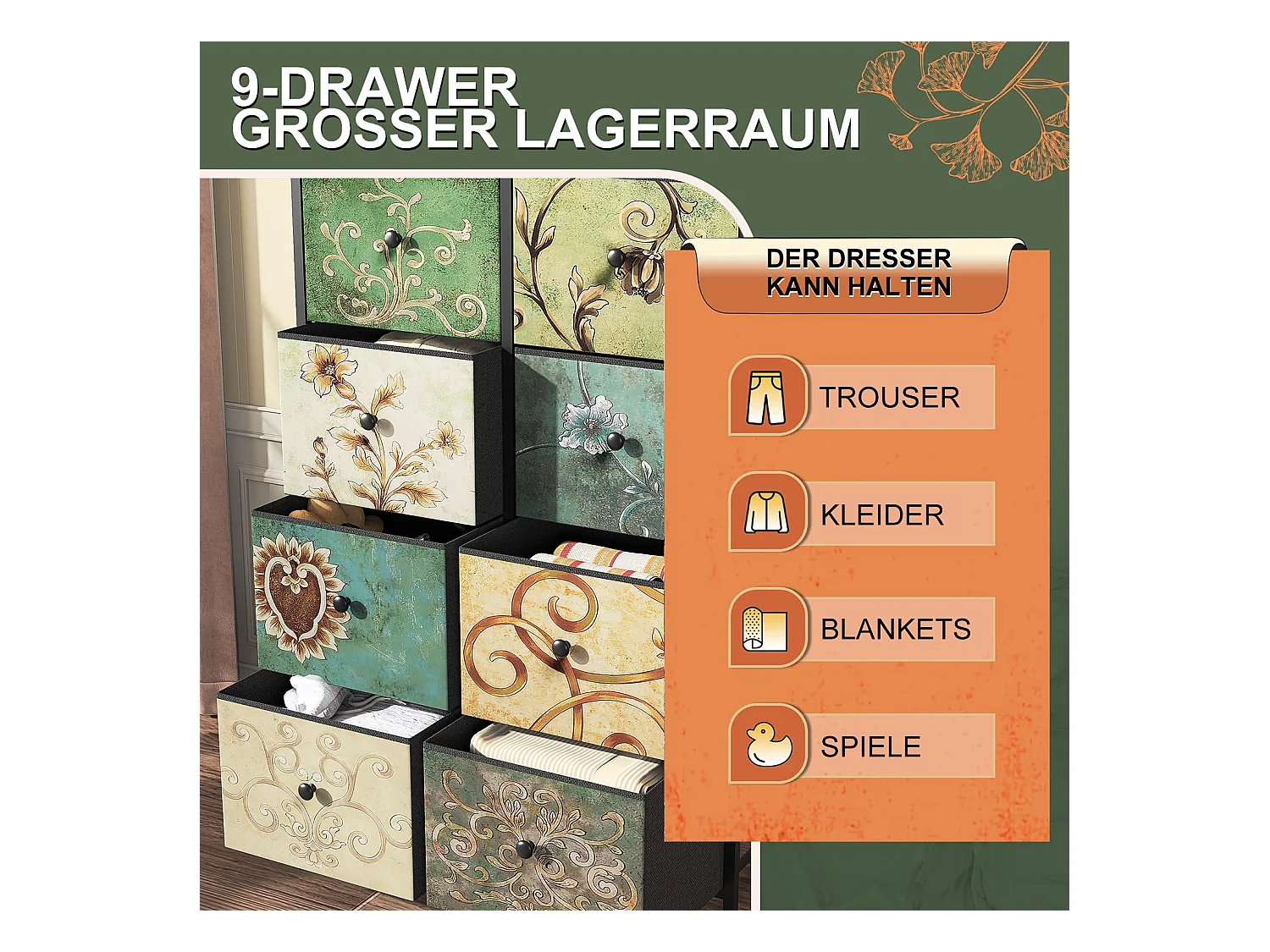 Commode vintage à 8 tiroirs en tissu imprimé, structure en métal – Design rétro et fonctionnel