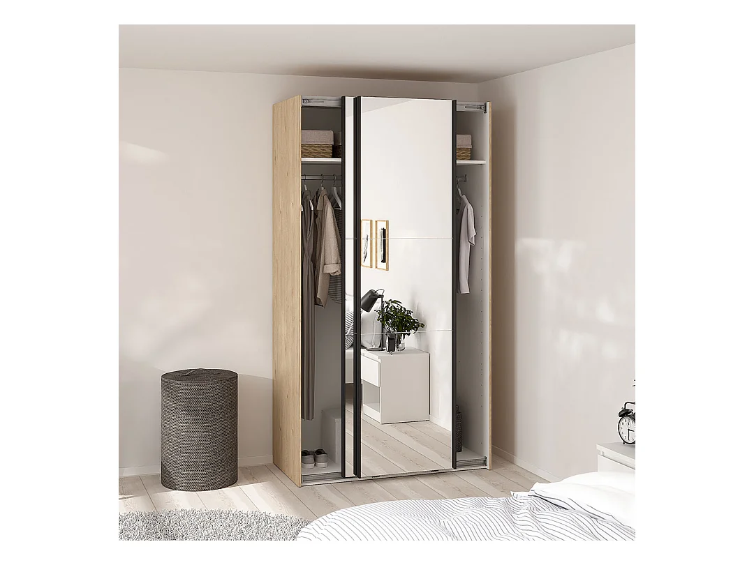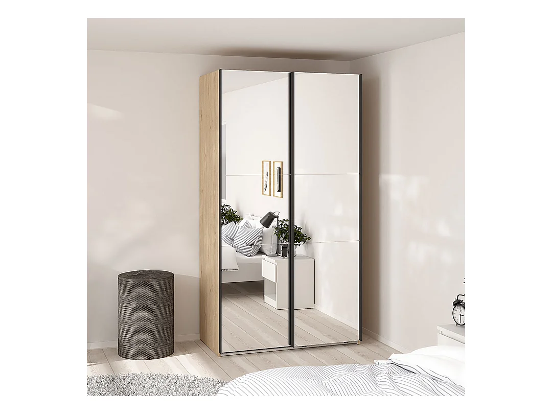 Como armoire coulissante 2 portes avec miroir 120x220cm chêne décor.