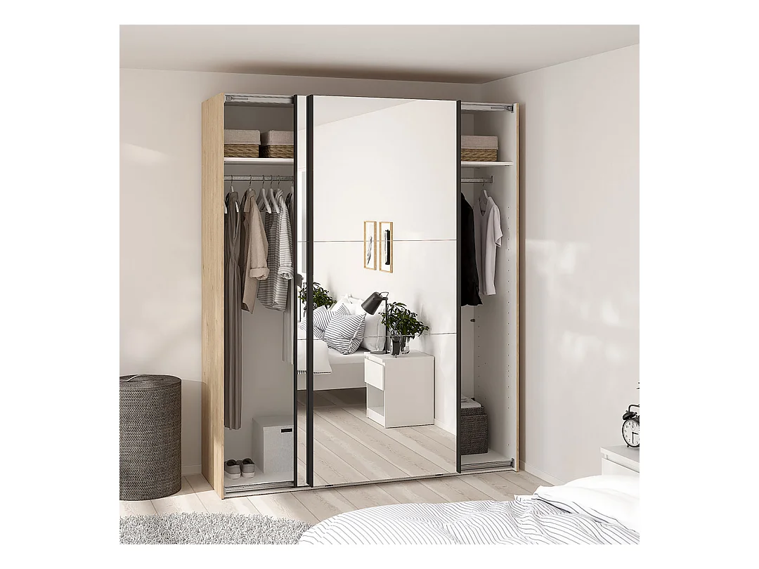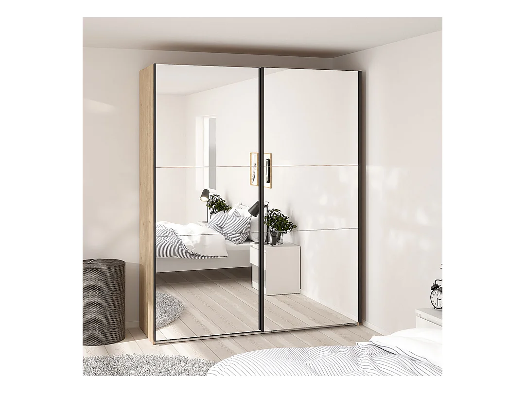 Como armoire coulissante 2 portes avec miroir 180x220cm chêne décor.