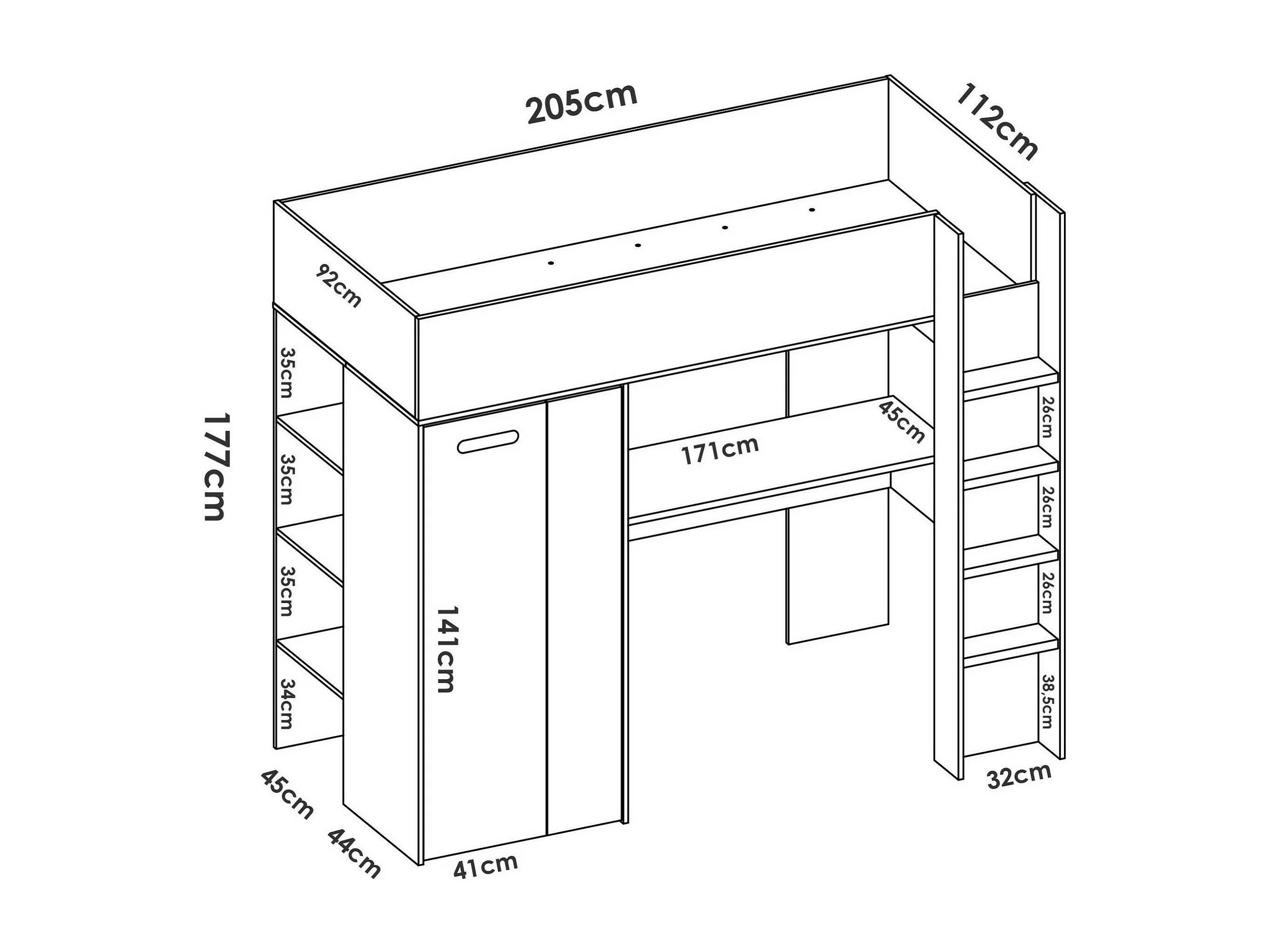 Composition de la chambre à coucher Dhovlan, Chambre complète, Chambre d'enfants, Kit mobilier pont, 206x111 h178 cm, Blanc et Chêne clair