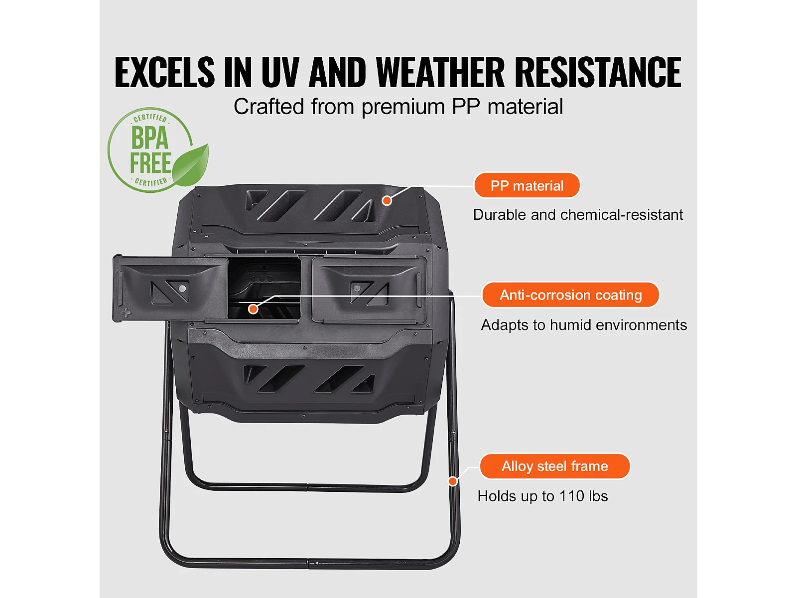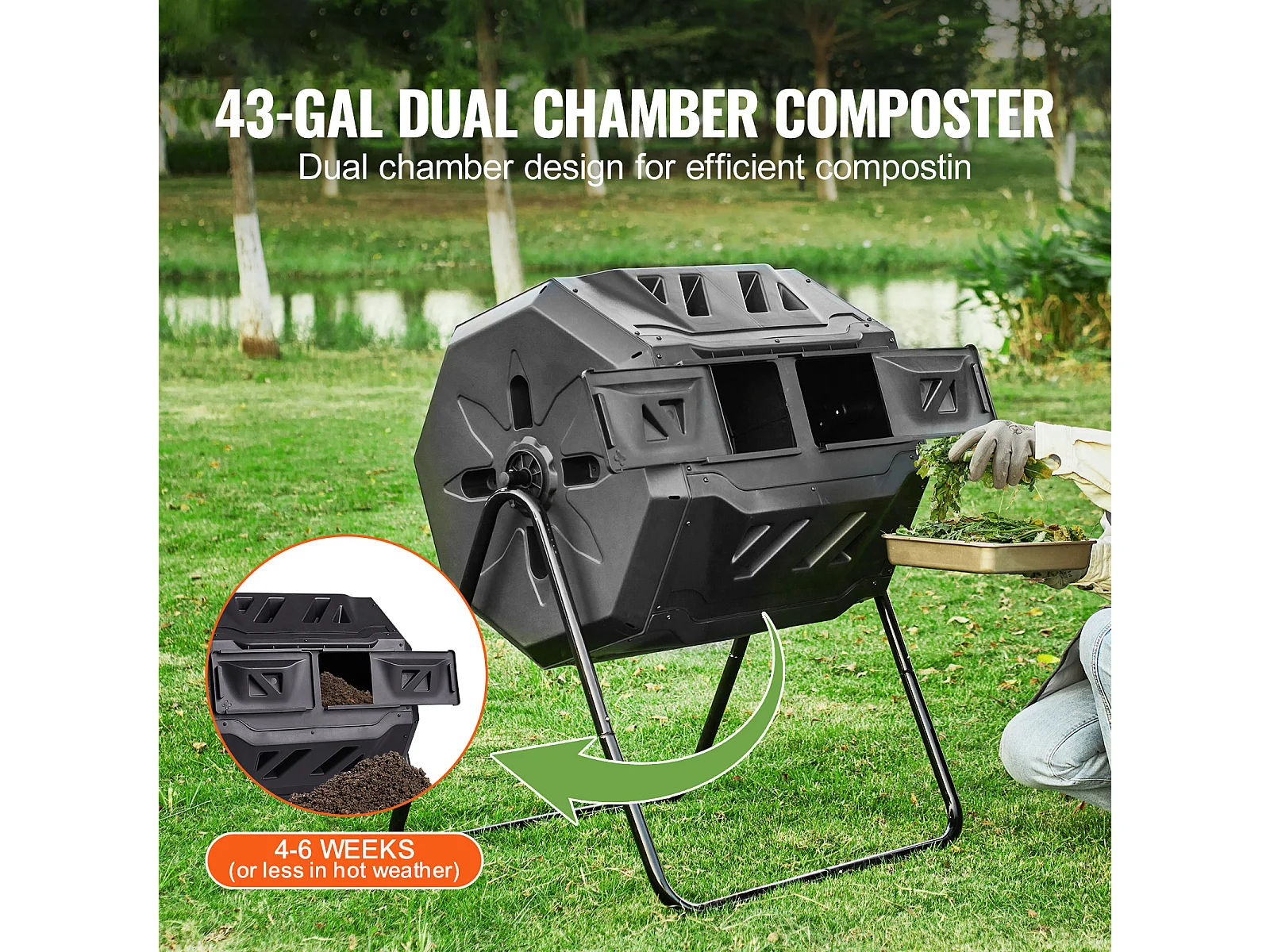 Composteur de jardin SucceBuy Composteur à Double Chambre de 43 Gal, Tambour Rotatif avec Portes Coulissantes