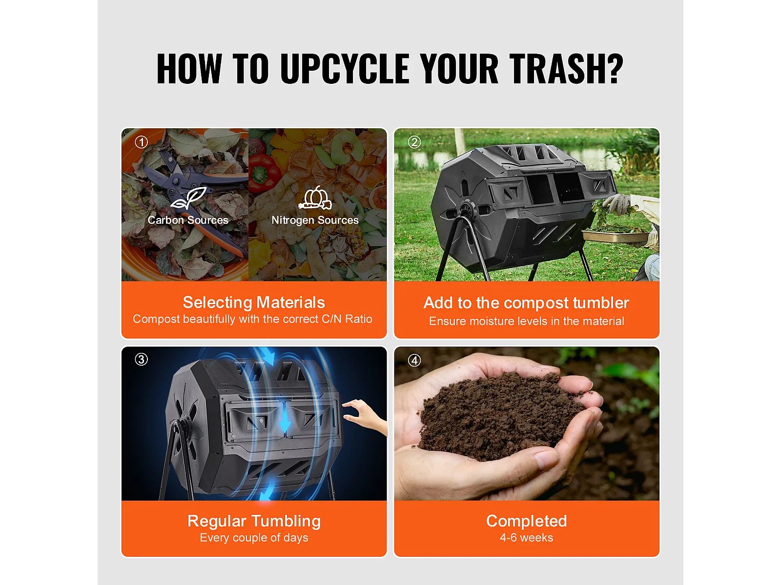 Composteur de jardin SucceBuy Composteur à Double Chambre de 37 Gal, Tambour Rotatif avec Portes Coulissantes
