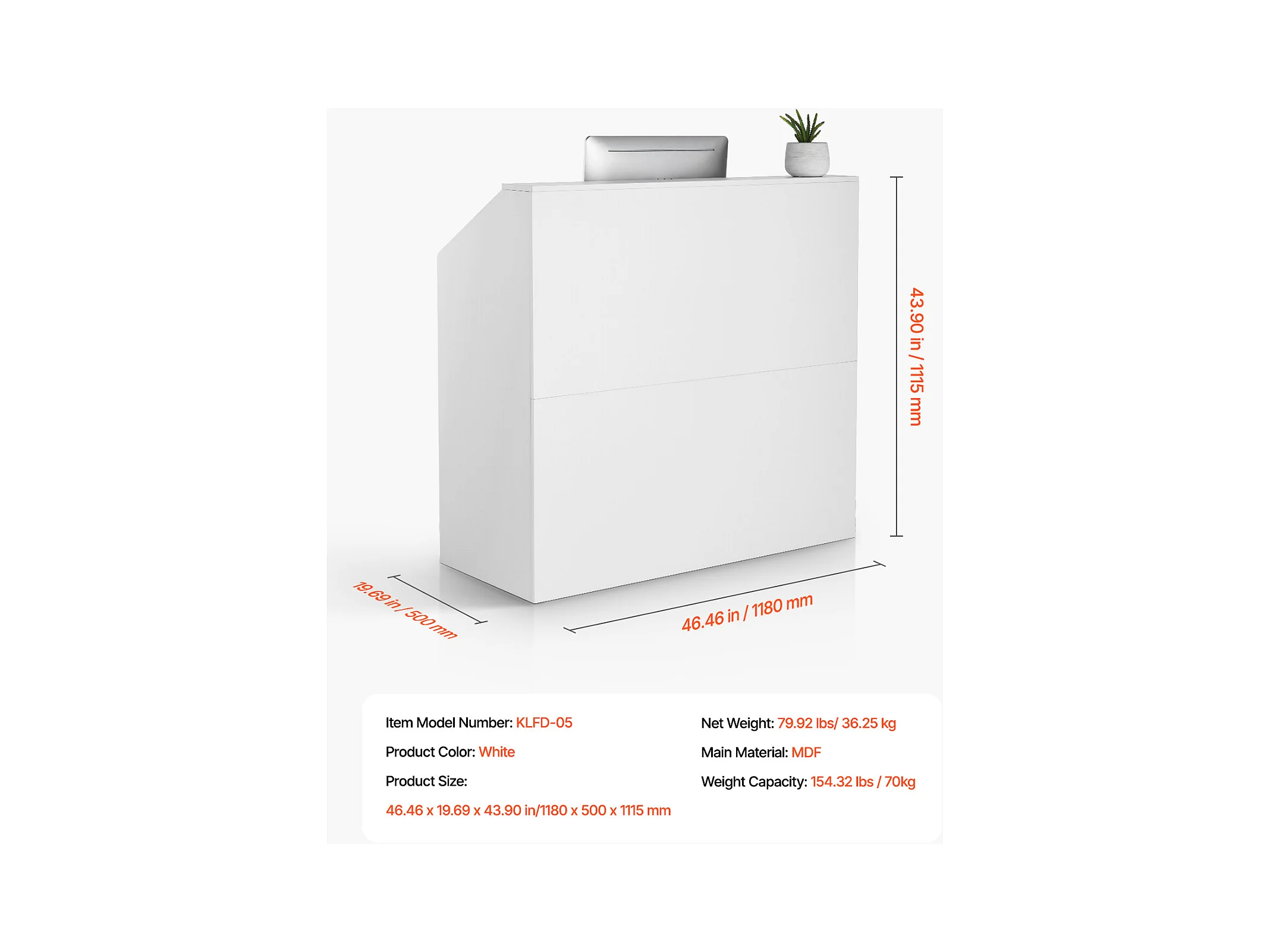 Comptoir d'Accueil Bureau, SucceBuy Bureau de Réception 118 cm, Table de Comptoir Rectangulaire, Bureau Blanc