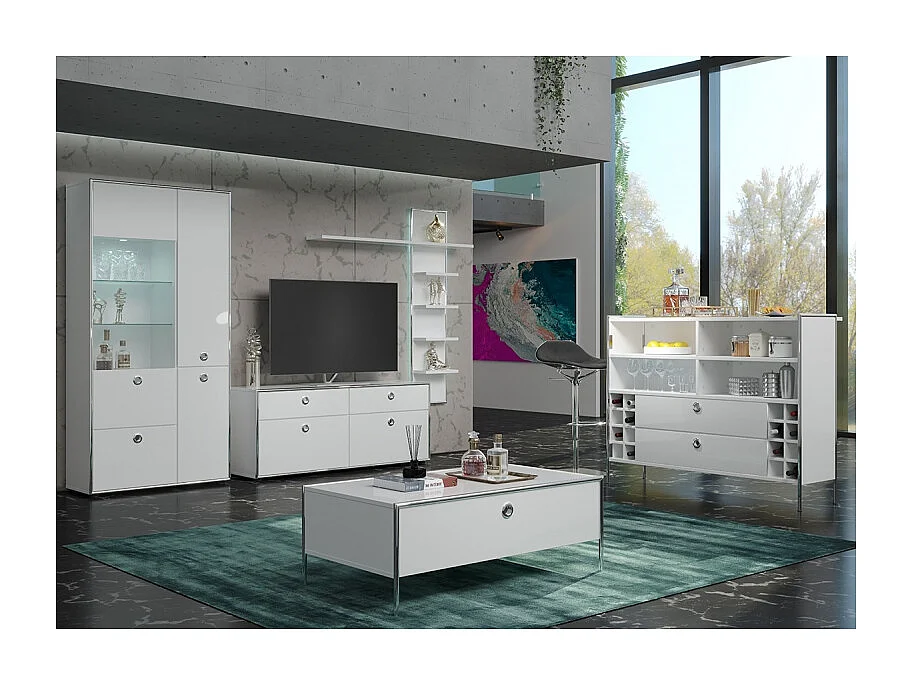 Comptoir de bar 2 tiroirs bois MDF blanc Arnaud