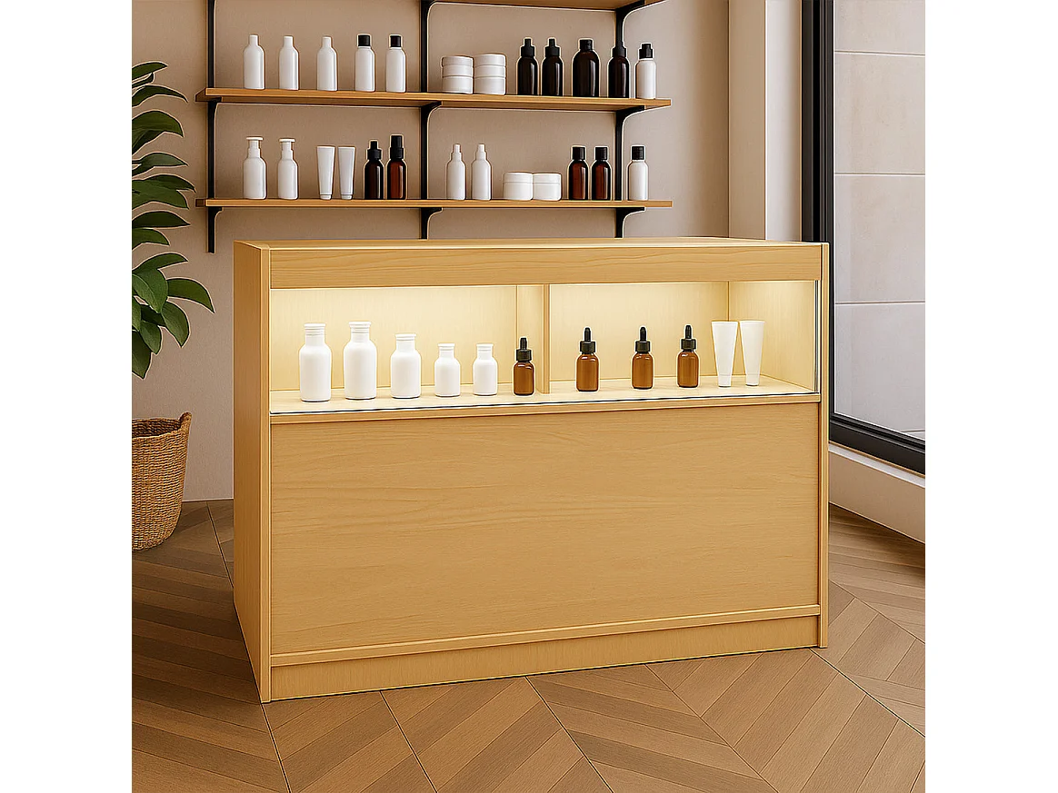 Comptoir de Vente Érable LED Intégrés B1200 Portes Coulissantes [2 Clés INCLUS]