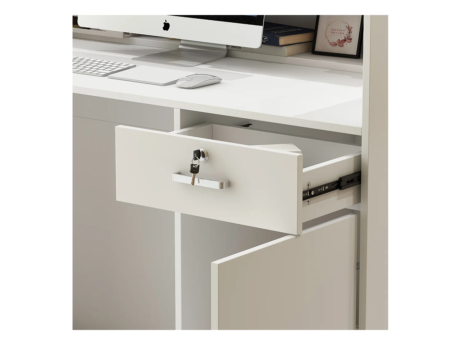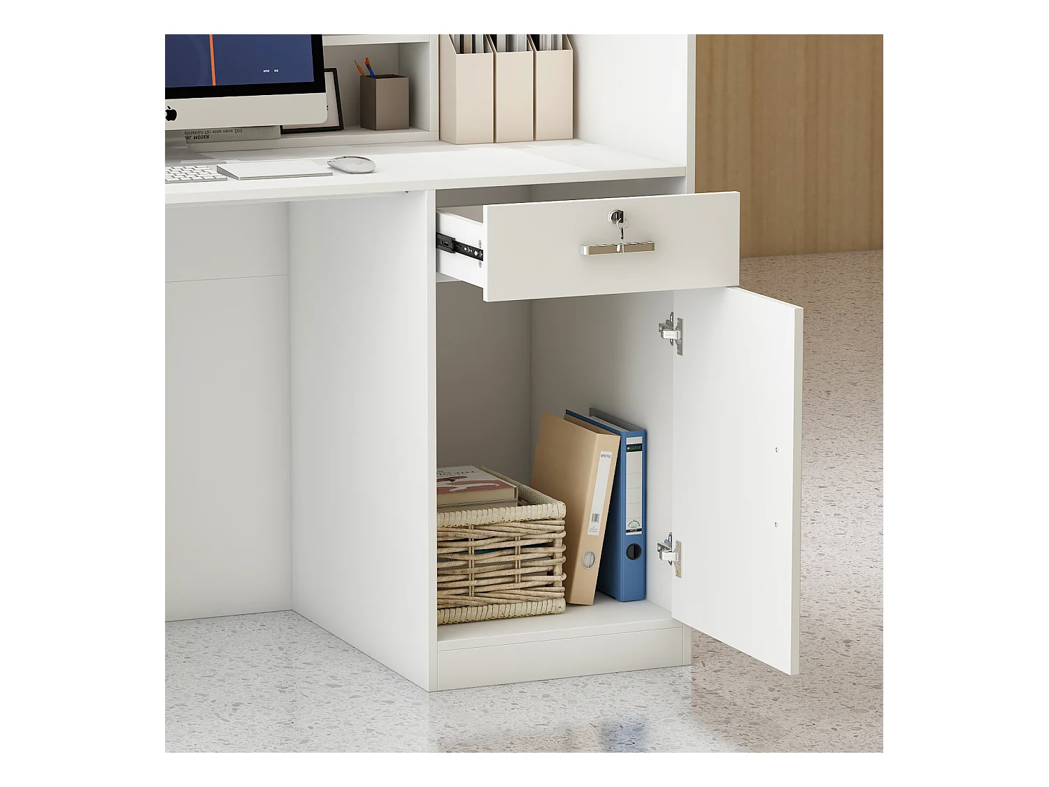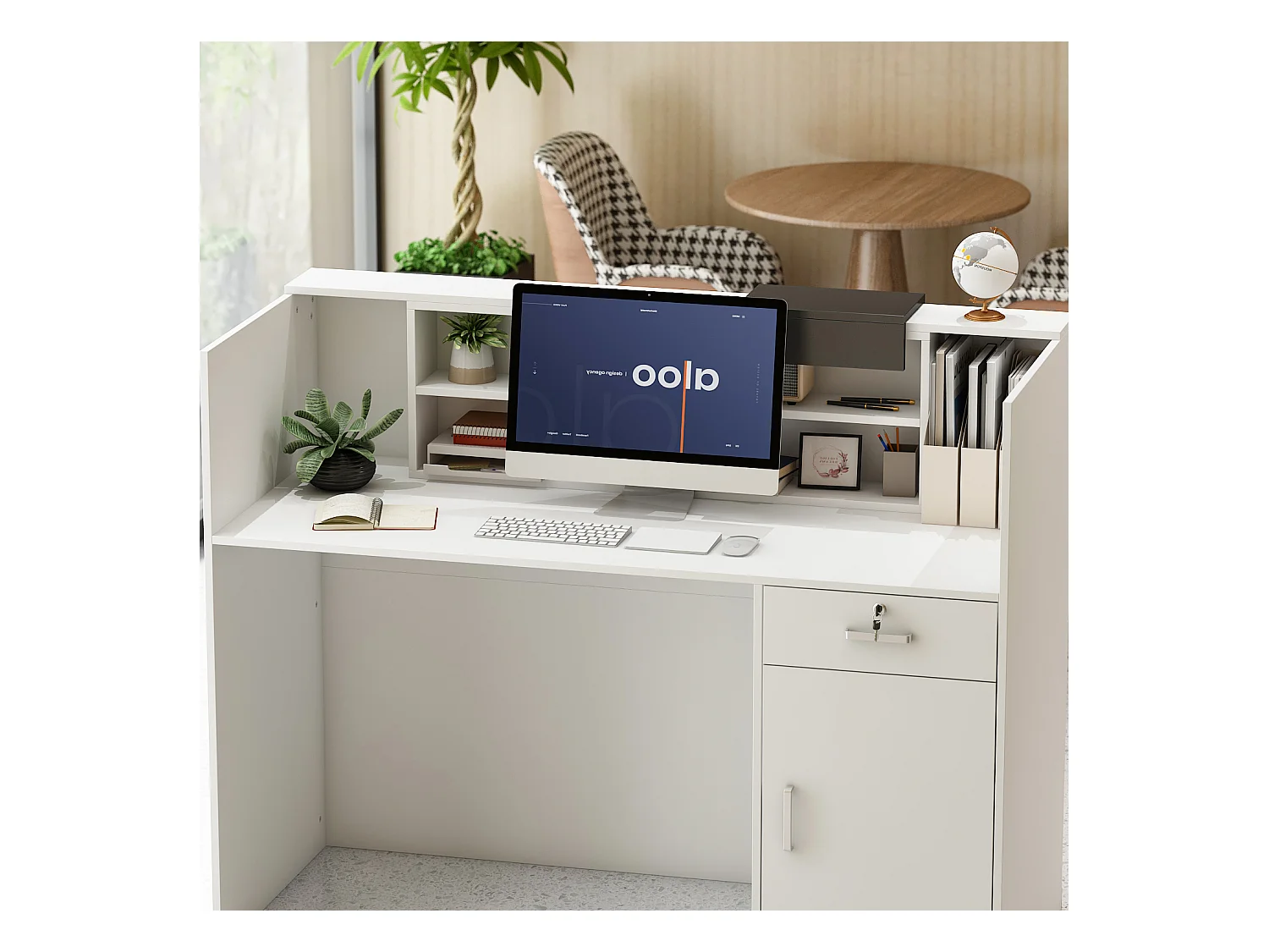 Comptoir de réception avec compartiments ouverts étagères Tiroir verrouillable Salon Bureau 120x110x47cm Blanc