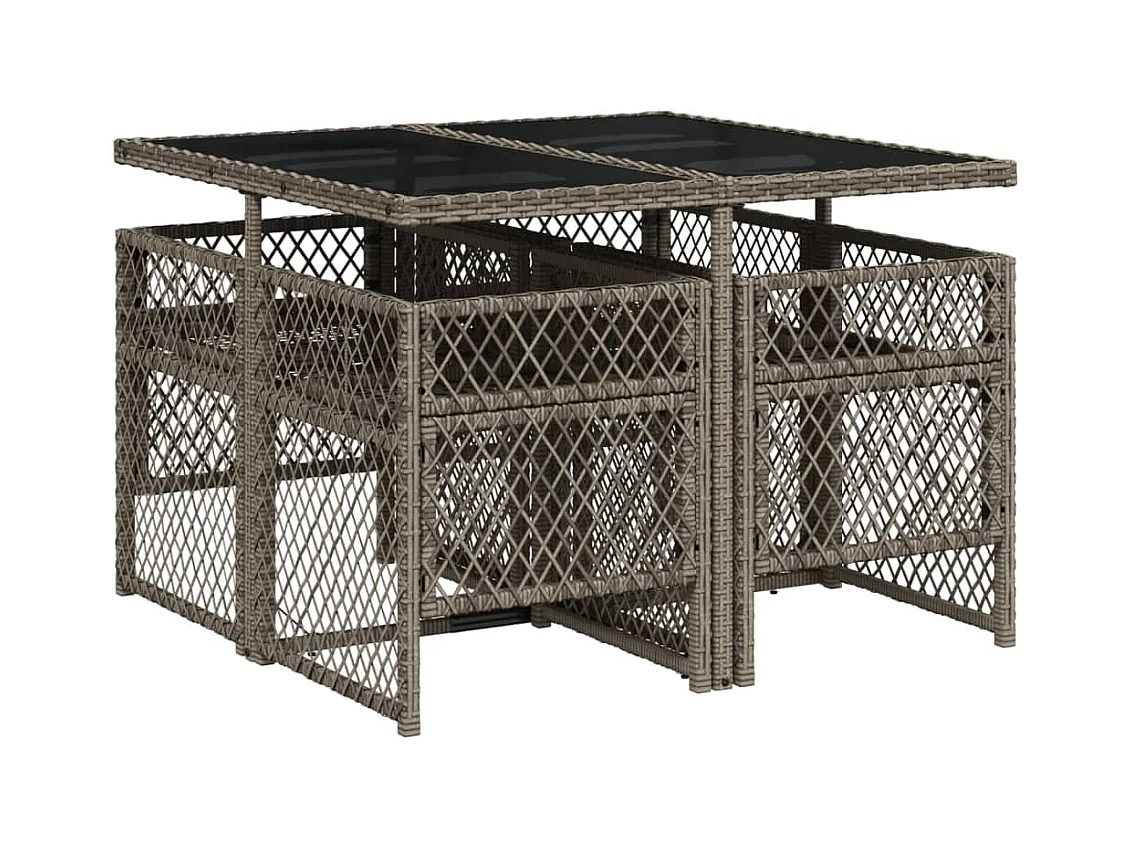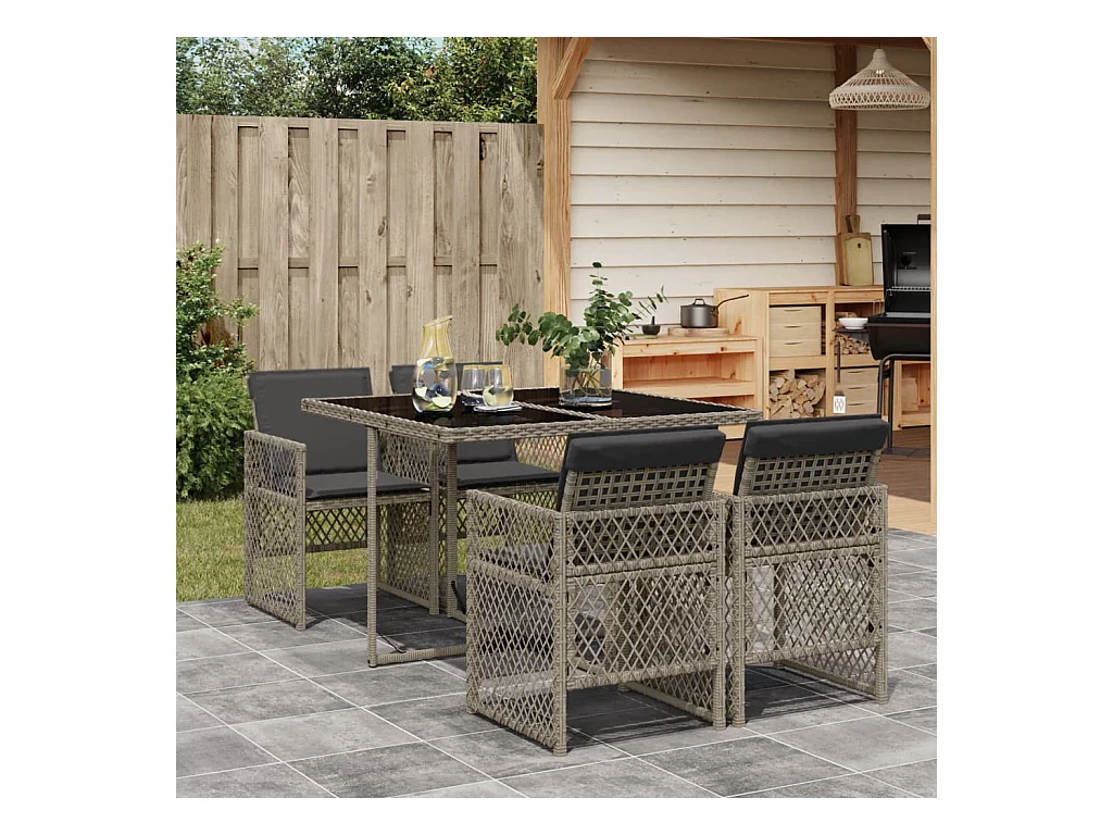 Sharif Ensemble à manger de jardin 5 pcs coussins gris résine tressée