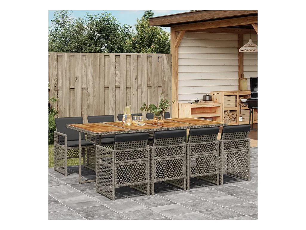 Sharif Ensemble à manger de jardin 9 pcs coussins gris résine tressée