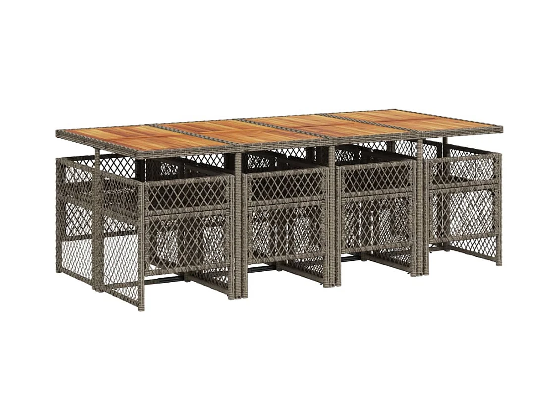 Zenn Ensemble à manger de jardin coussins 13 pcs gris résine tressée