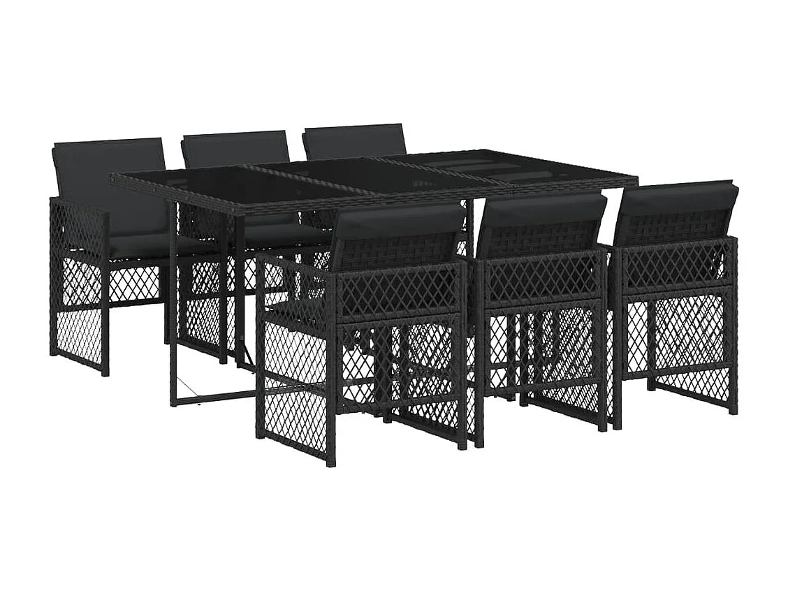 Jesse Ensemble à manger de jardin coussins 7pcs Noir Résine tressée