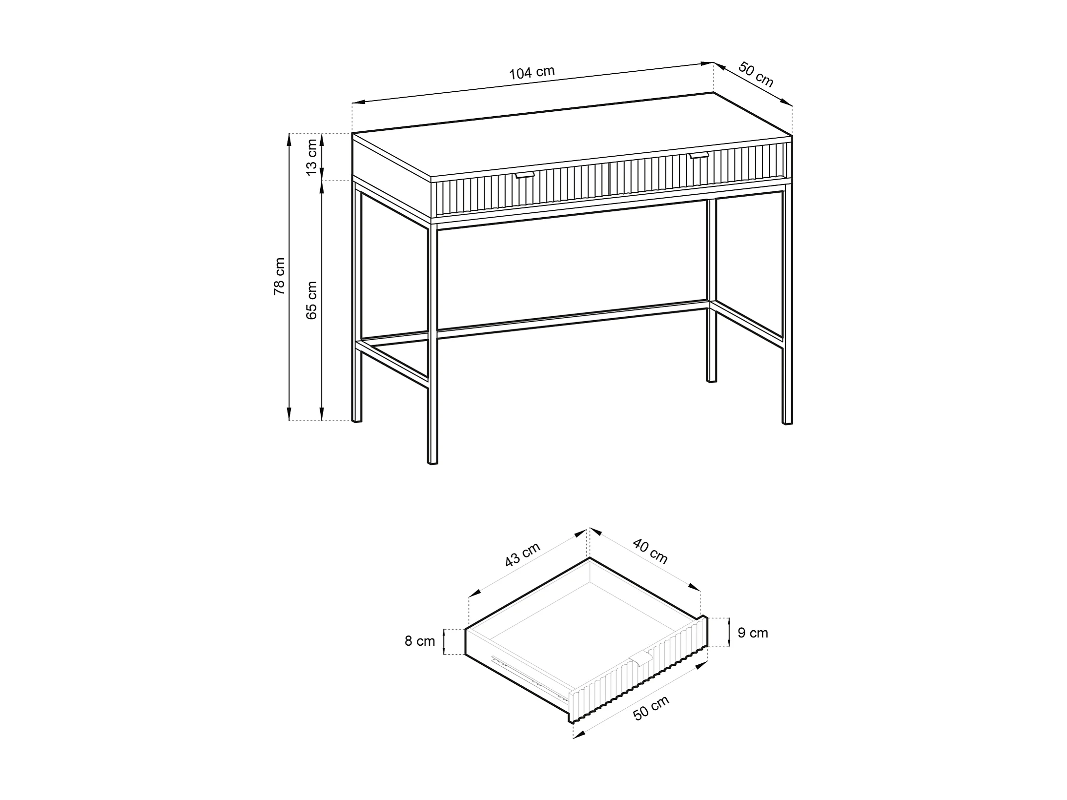 Console 2 tiroirs avec pieds en métal noir 104x78 cm