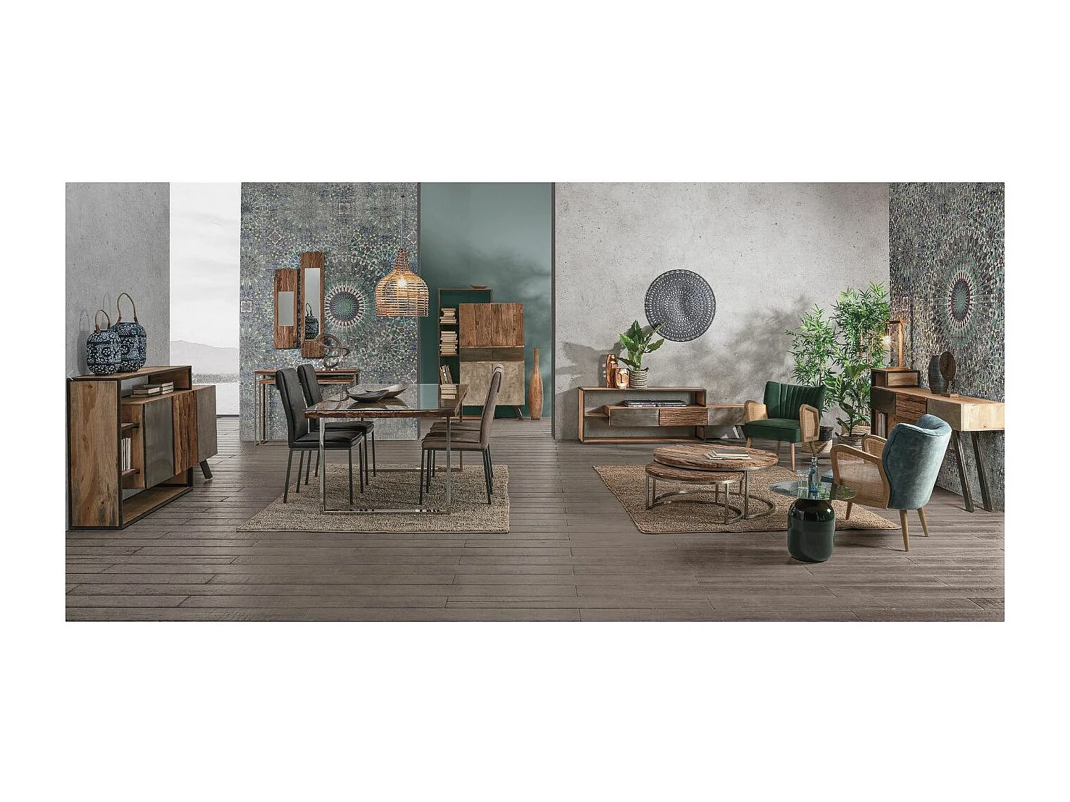 Console industriel 2 tiroirs bois d'acacia et acier marron Palma 175cm