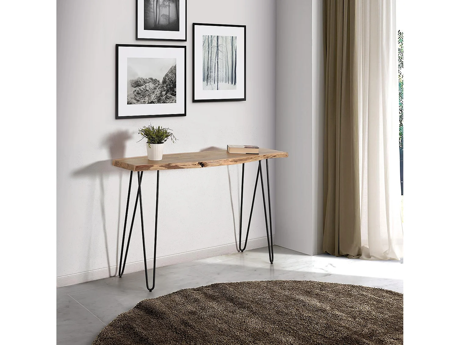 Console bois d'acacia teint naturelle et métal