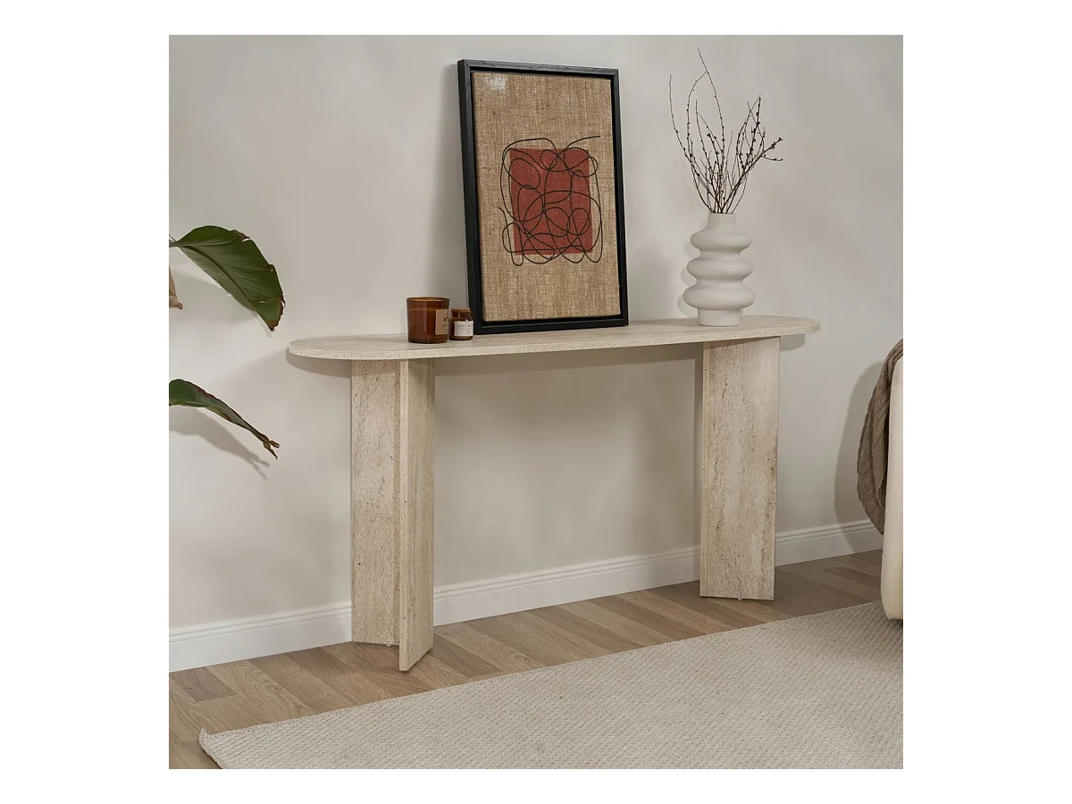 Console 2 Tiroirs Façade Effet Bois Rainuré L100 x H80 cm - TARA