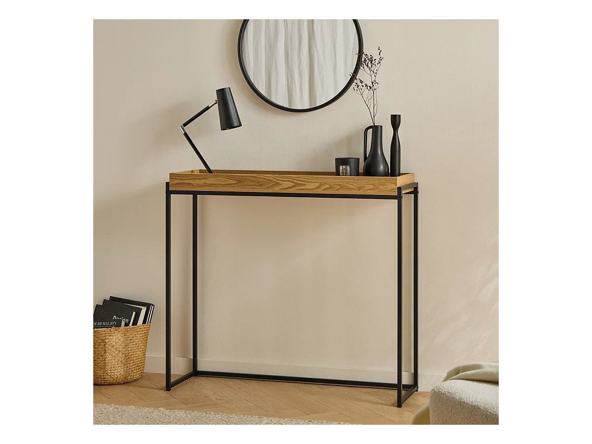 Console avec plateau à rebords et pieds en métal noir L100 cm - JESSIE