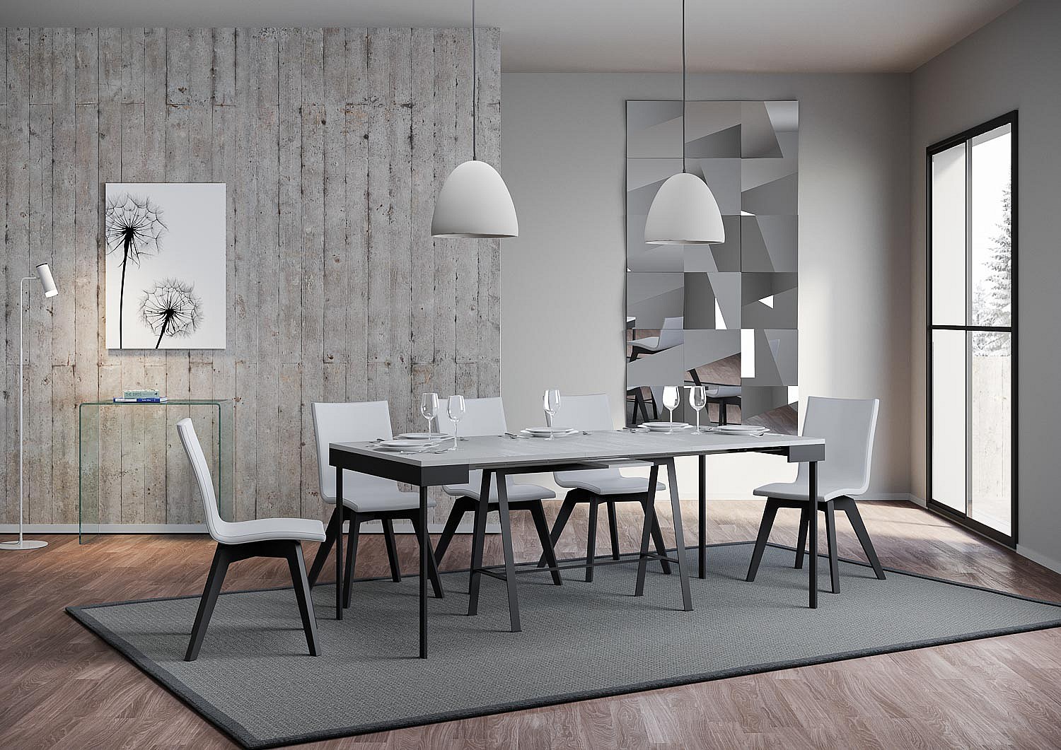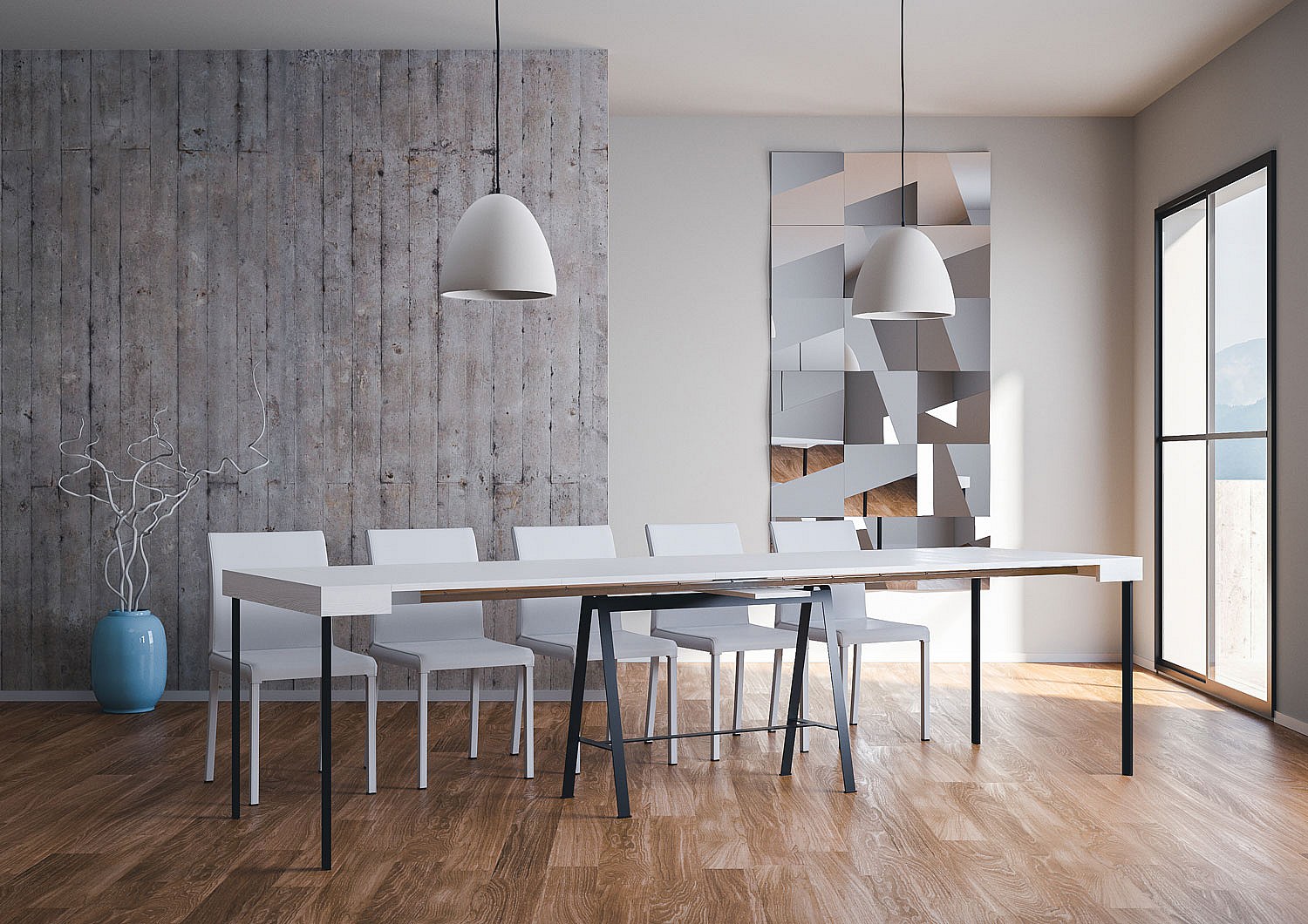 Console extensible 90x40/300 cm Elettra Frêne Blanc cadre Anthracite