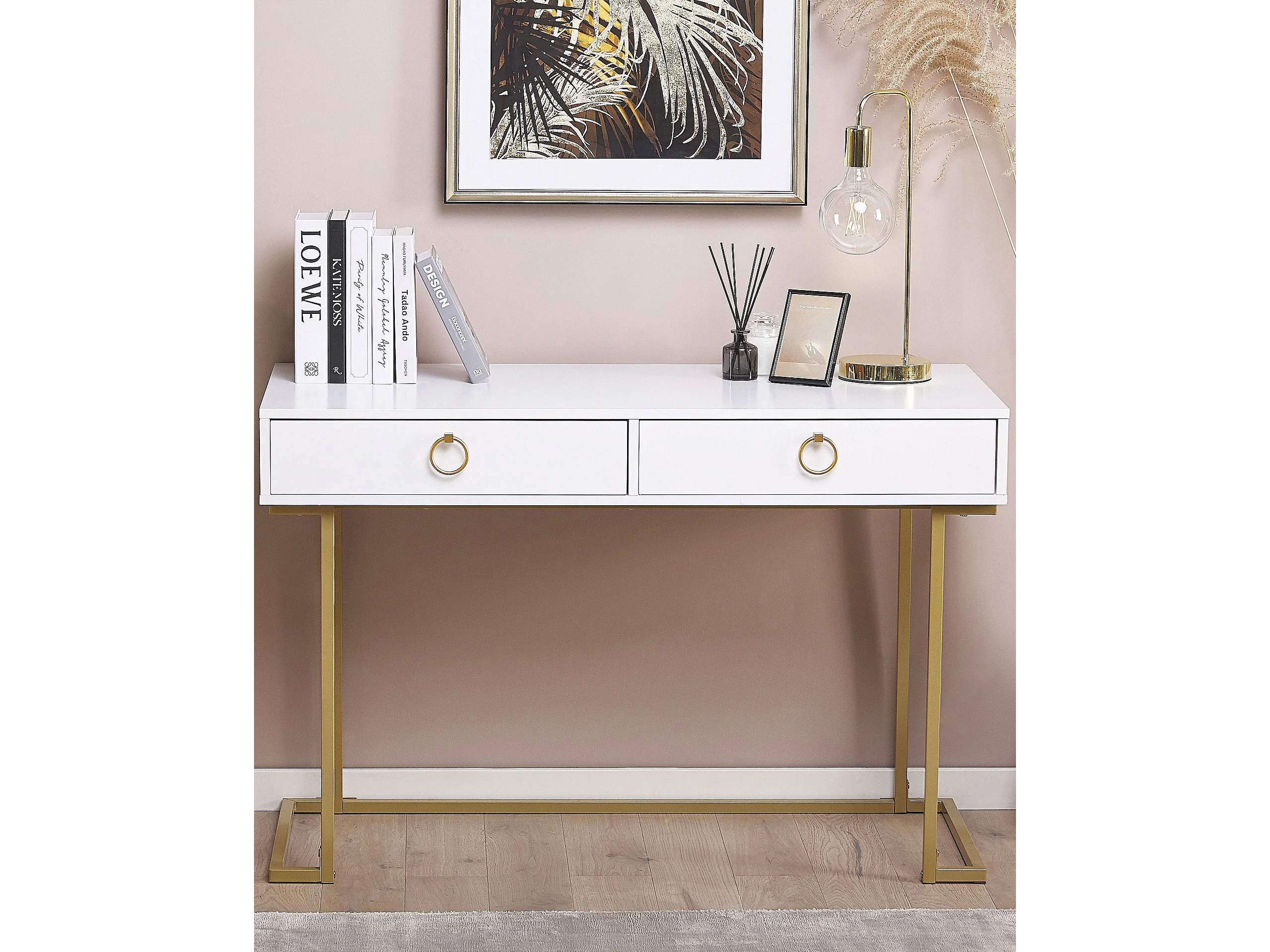 Console Table de bureau WESTPORT Blanc/doré 115 cm 50 cm avec rangement