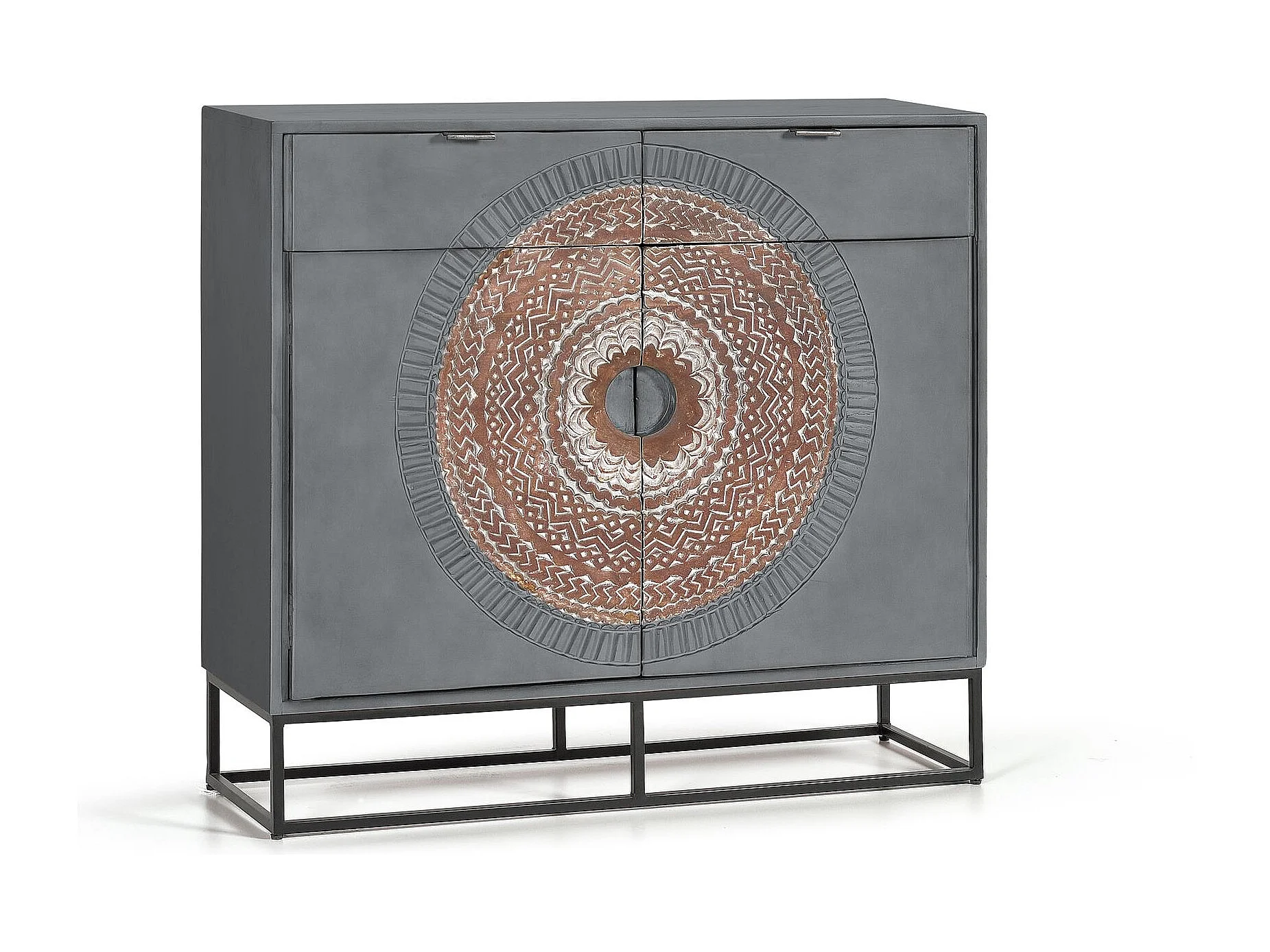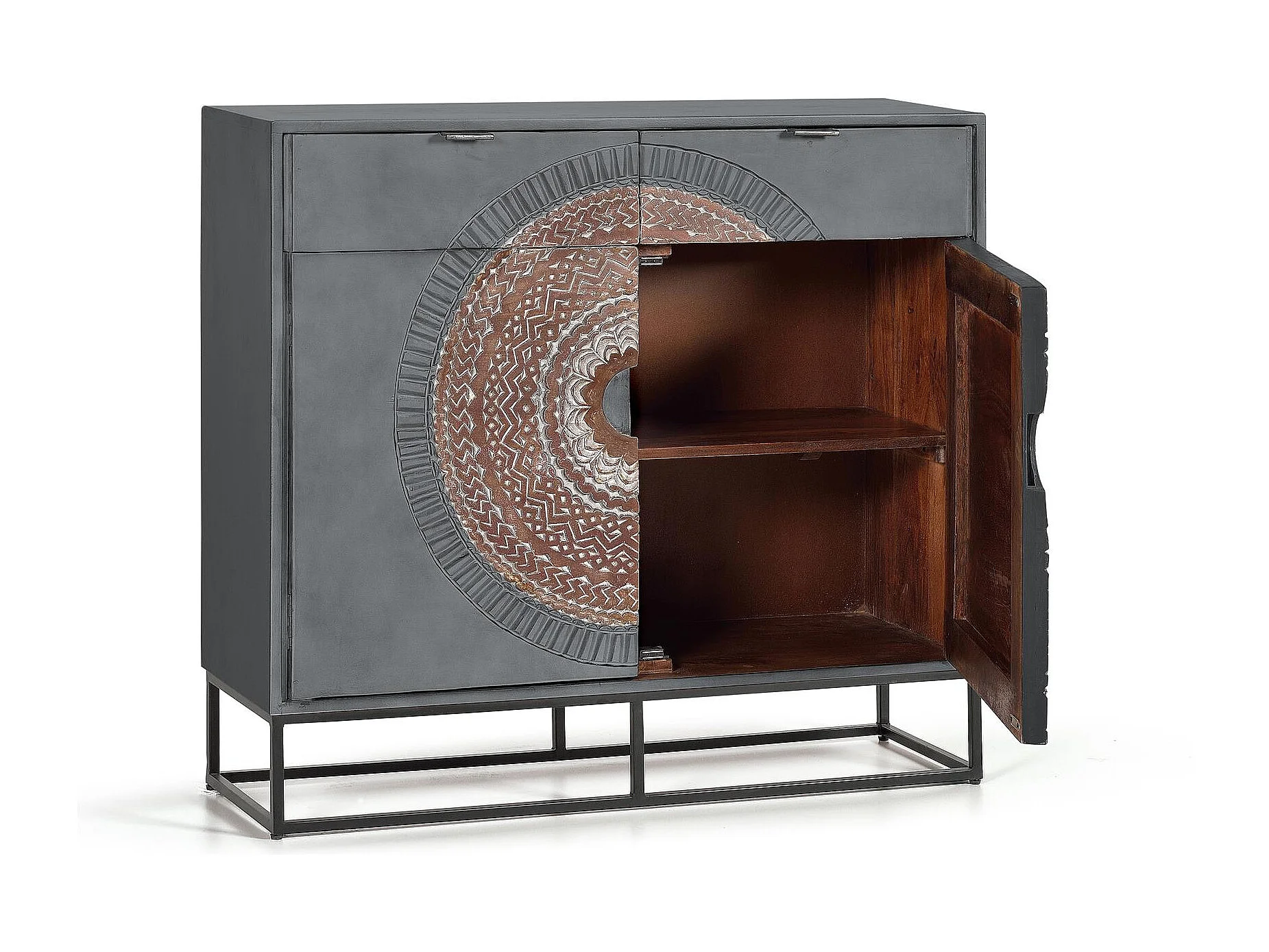 Commode en manguier et pieds en métal gris et marron