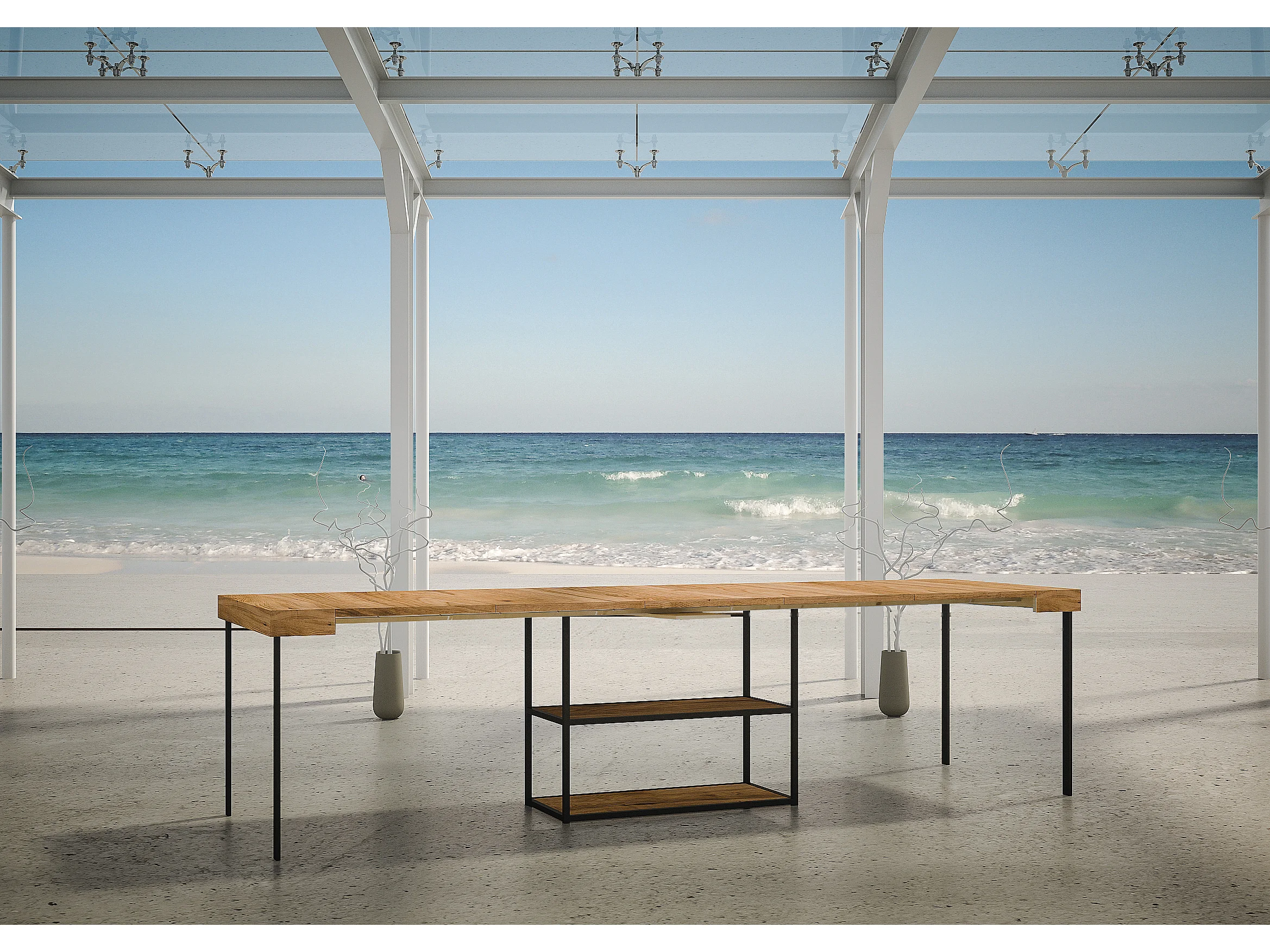 Console Extensible 90x40/290 cm Tecno Sapin Teinté cadre Anthracite