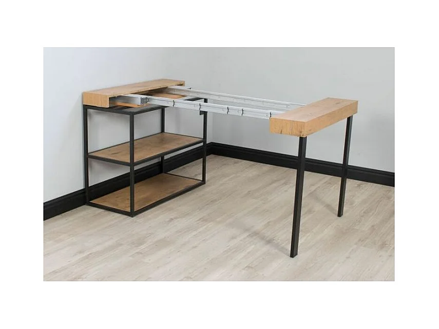 Console Extensible 90x40/190 cm Tecno Small Premium sapin teinté pieds anthracite