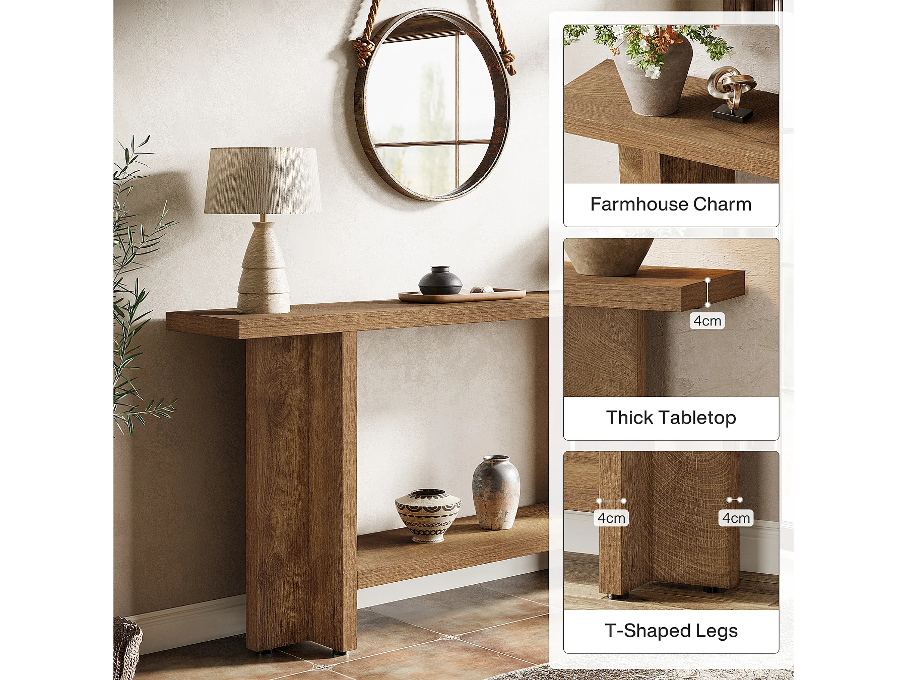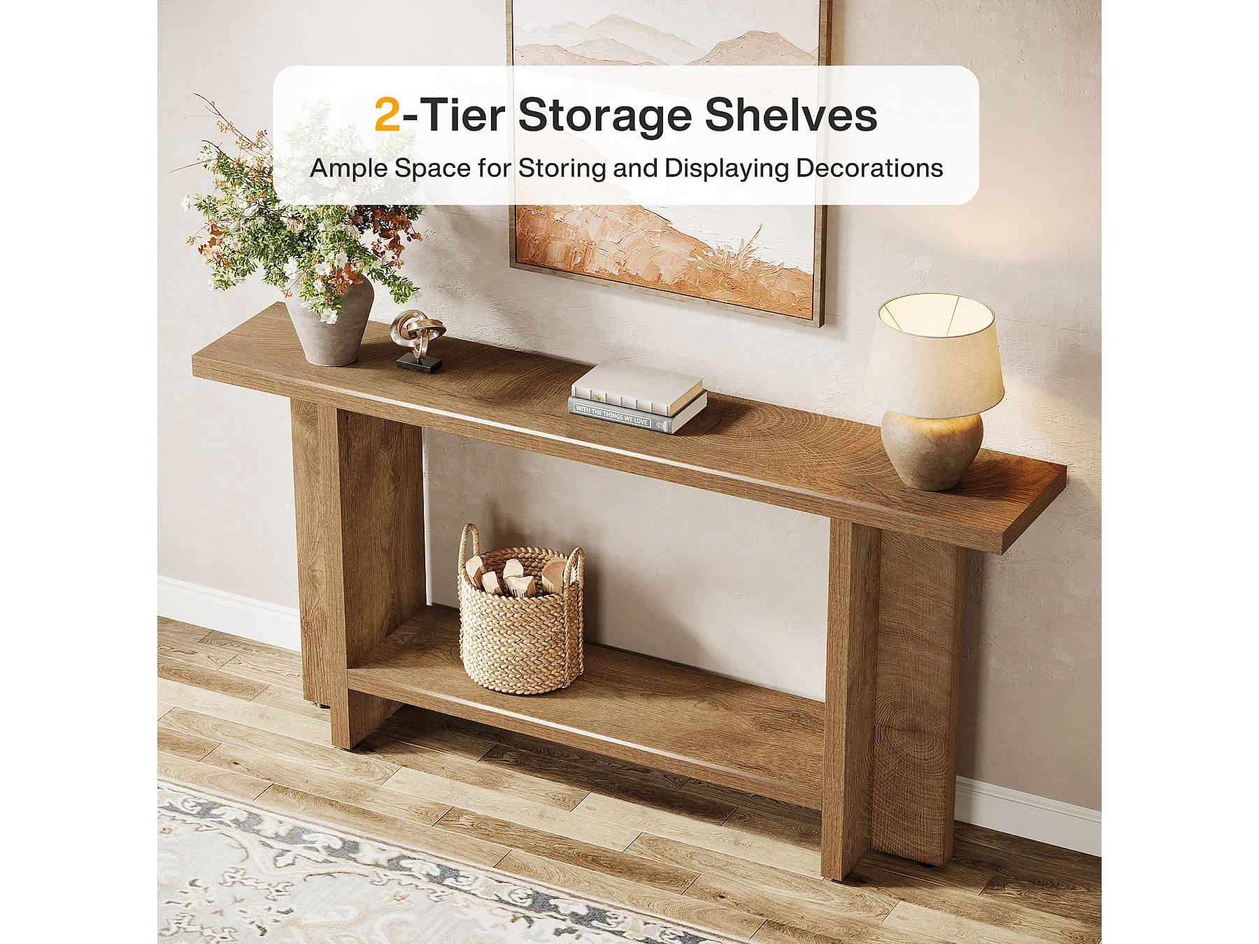 Console d'entrée de 150 cm, table de canapé longue et étroite à 2 niveaux derrière le canapé pour le salon