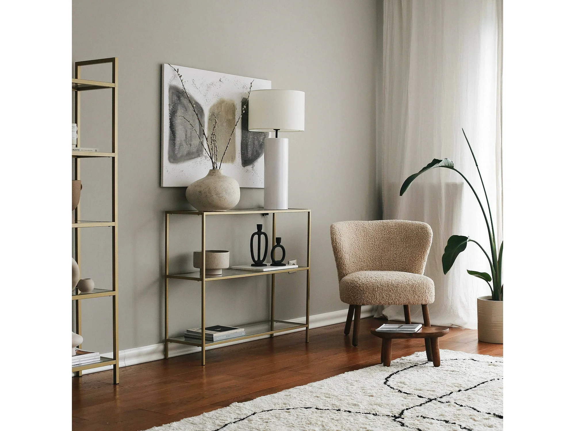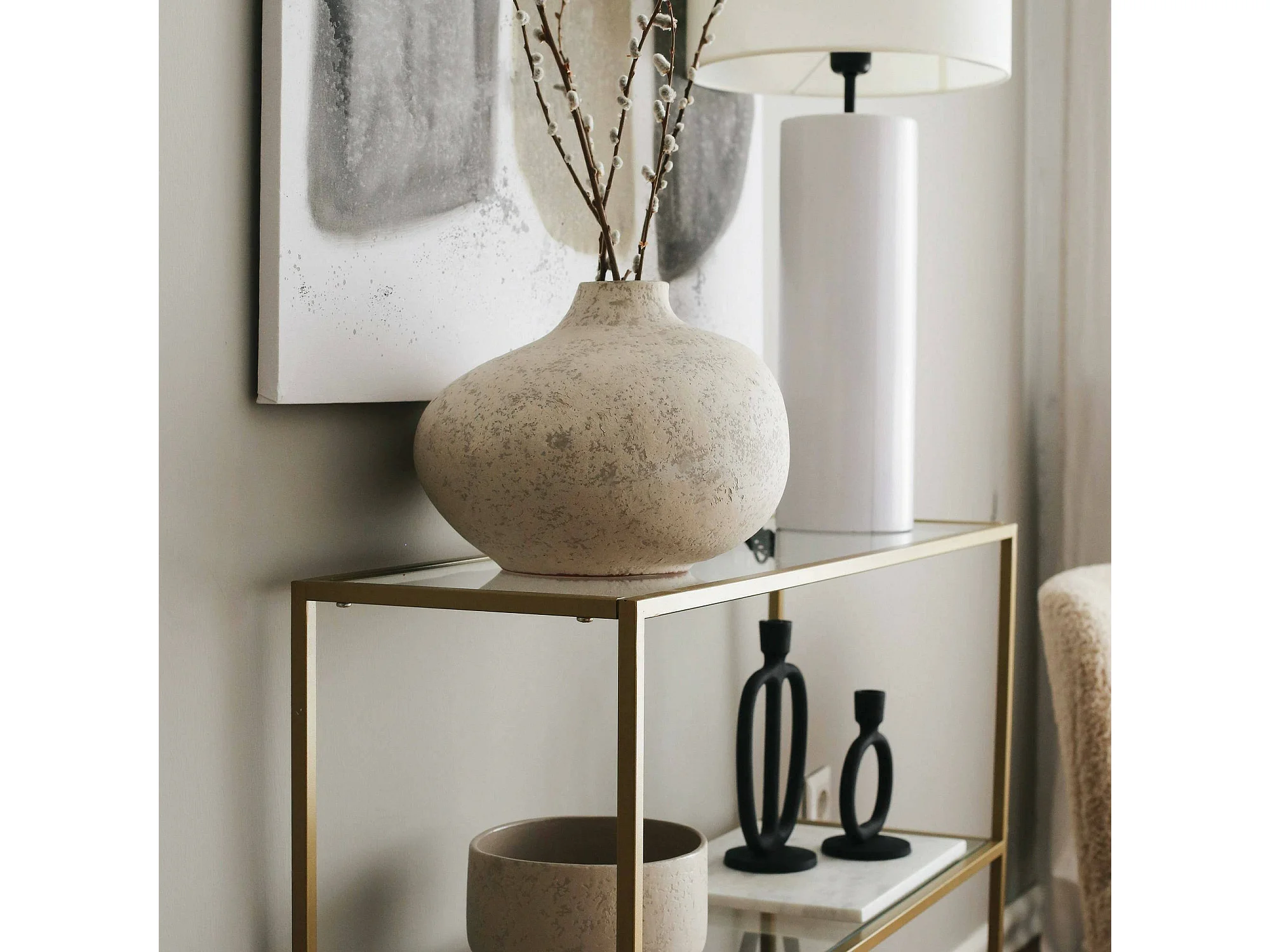 Console Elara, Table polyvalente, Armoire de rangement, Bureau du couloir, 100x30 h85 cm, Or