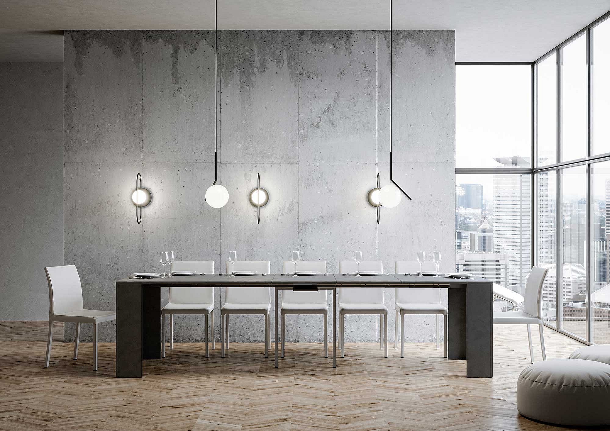 Table extensible 90x160/420 cm Tecno Gris Béton cadre Anthracite