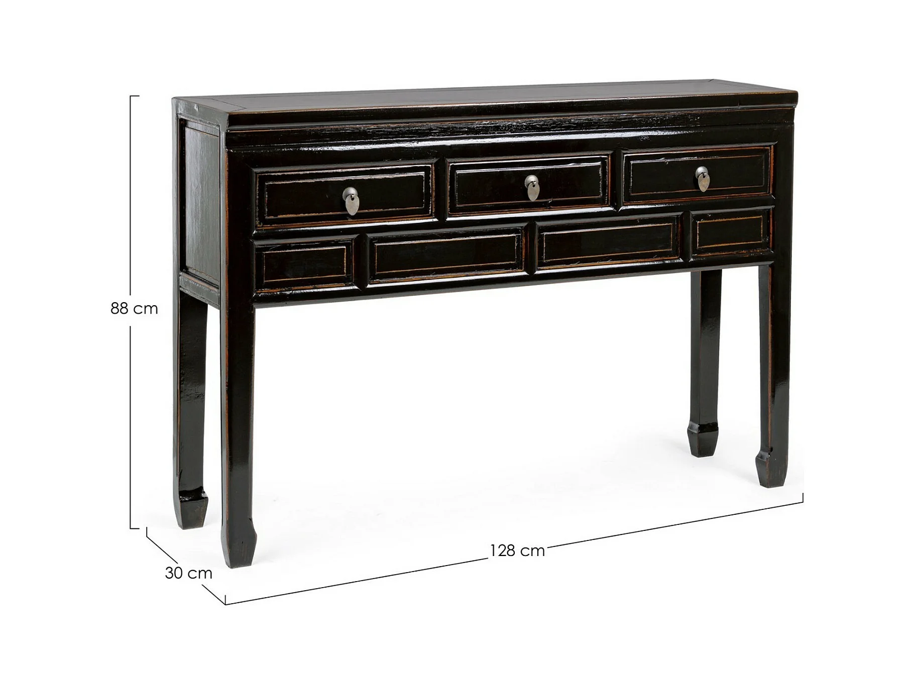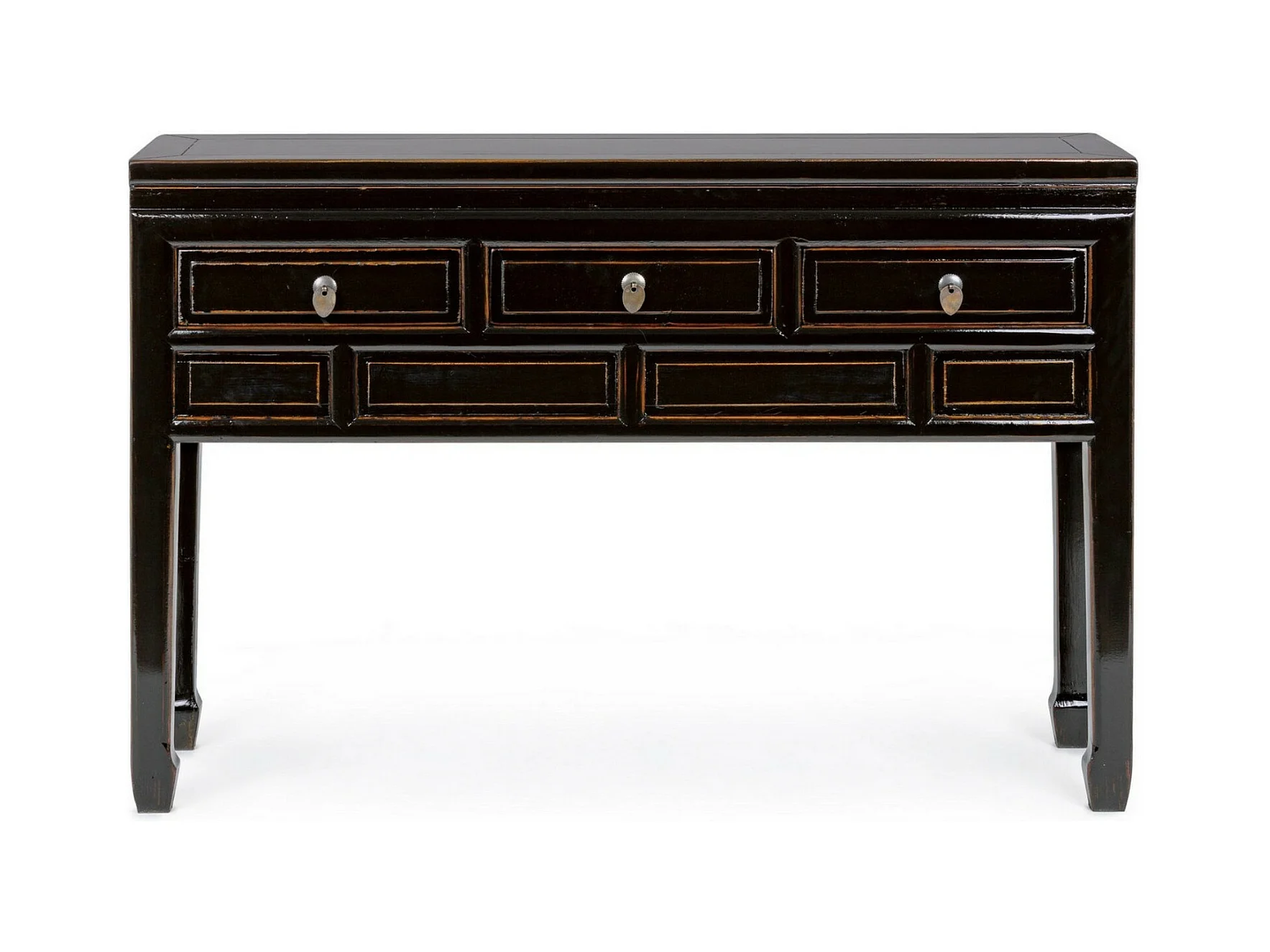 Console en bois d'orme noir 3 tiroirs Juan 128cm