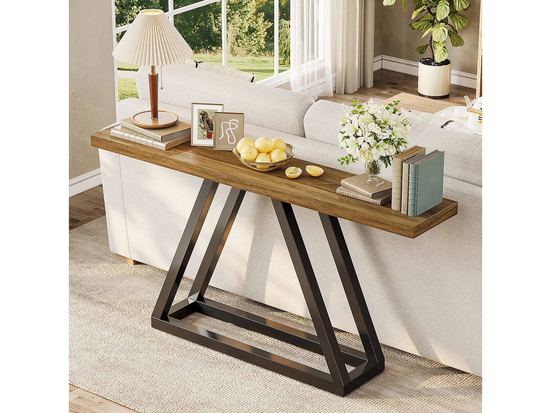 Table console rectangulaire de 160 cm de long, table basse derrière le canapé, table de ferme pour entrée, couloir, salon (marron rustique)