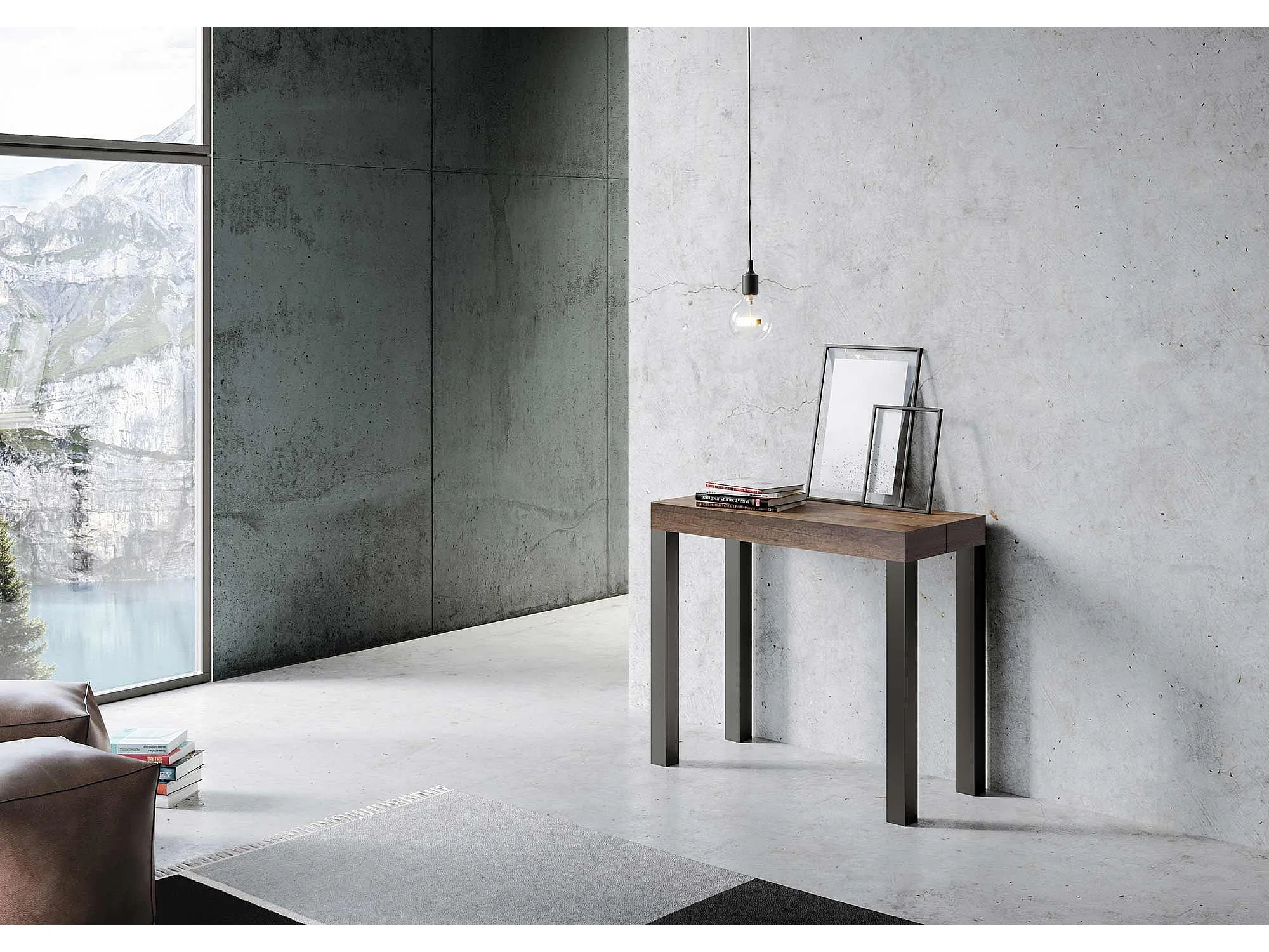 Console extensible 90x40/196 cm Everyday Small noyer pieds anthracite