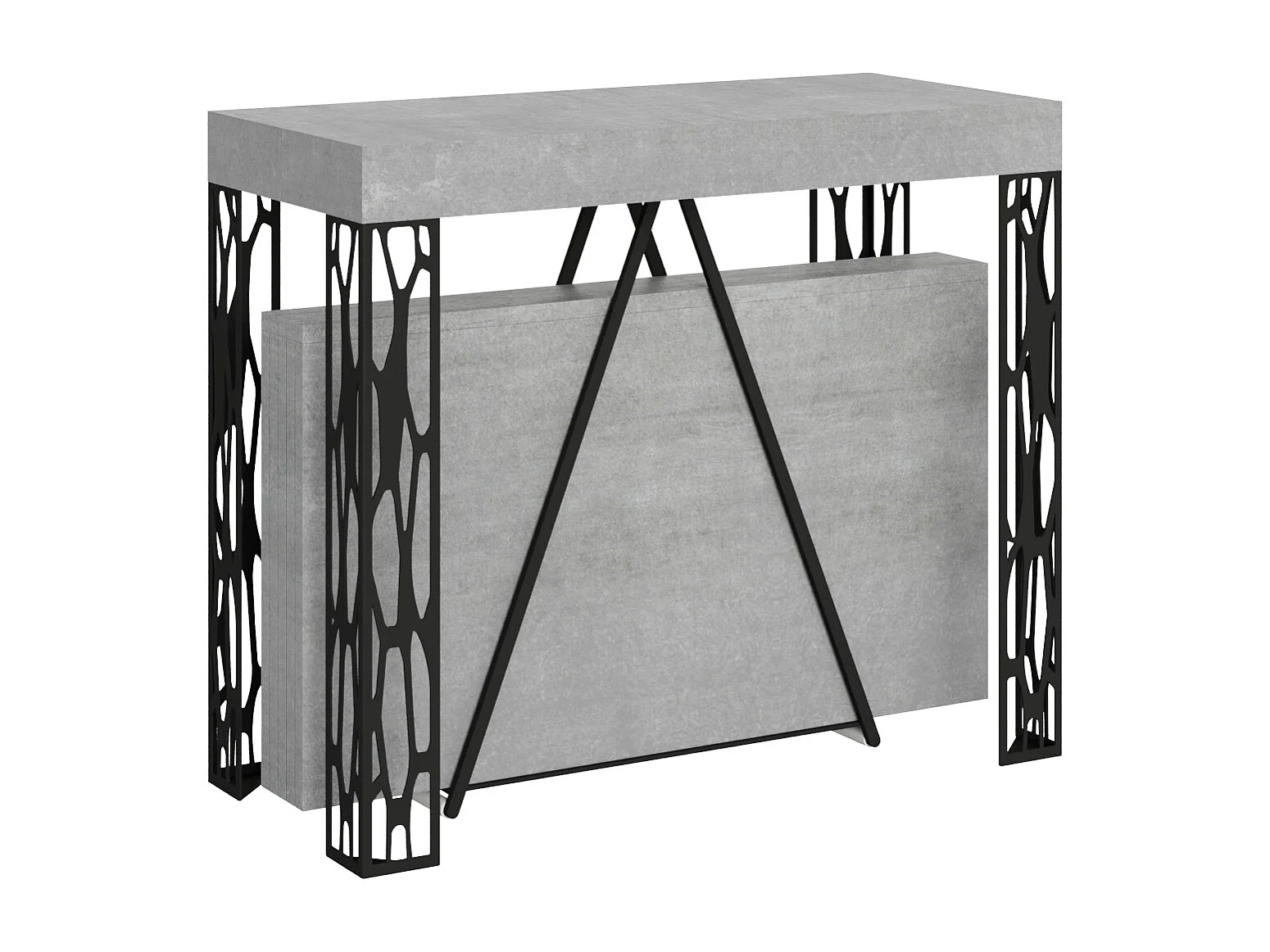Console extensible 90x40/196 cm Kerpa Small gris béton cadre anthracite