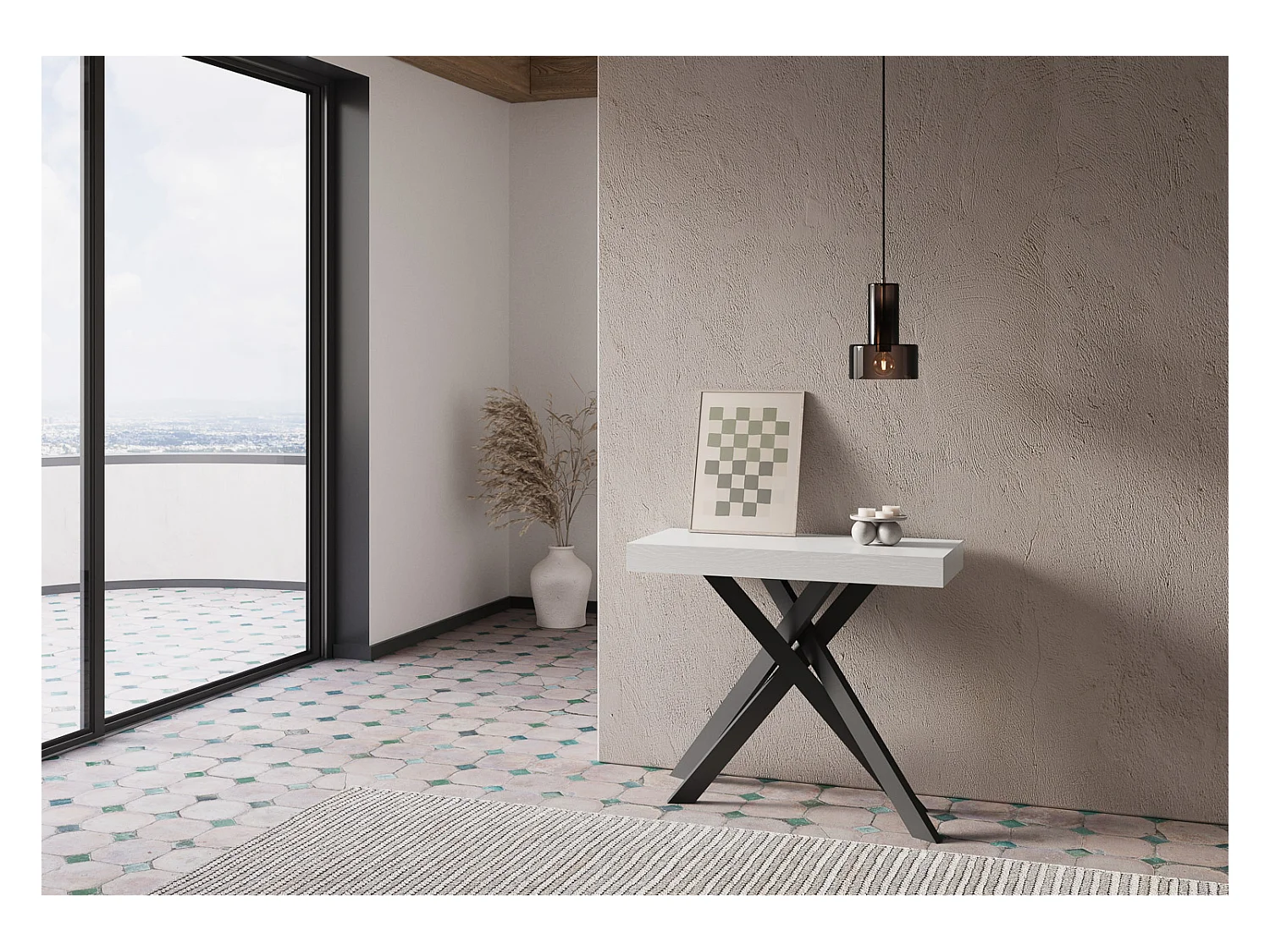 Console extensible 90x40/196 cm Krack Small frêne blanc pieds anthracite