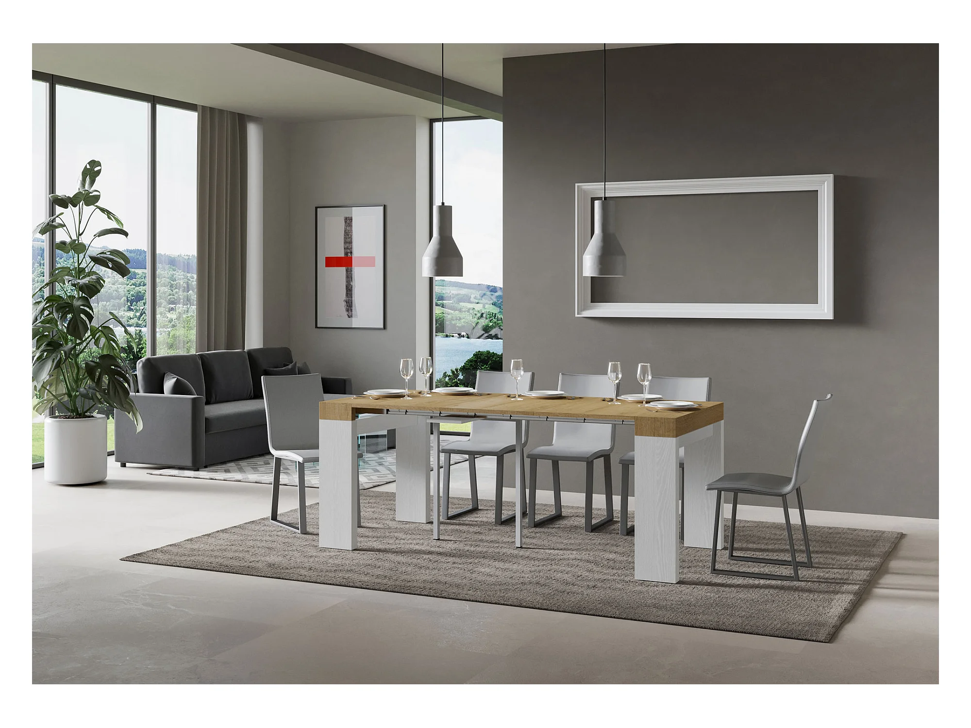 Console extensible 90x40/196 cm Spimbo Mix Small dessus Frêne Blanc - structure Chêne Nature