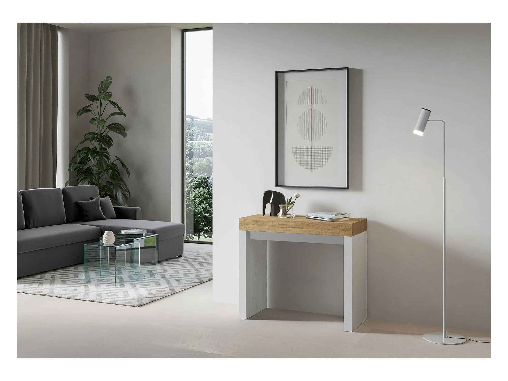 Console extensible 90x40/196 cm Naxy Mix Small dessus Frêne Blanc - structure Chêne Nature