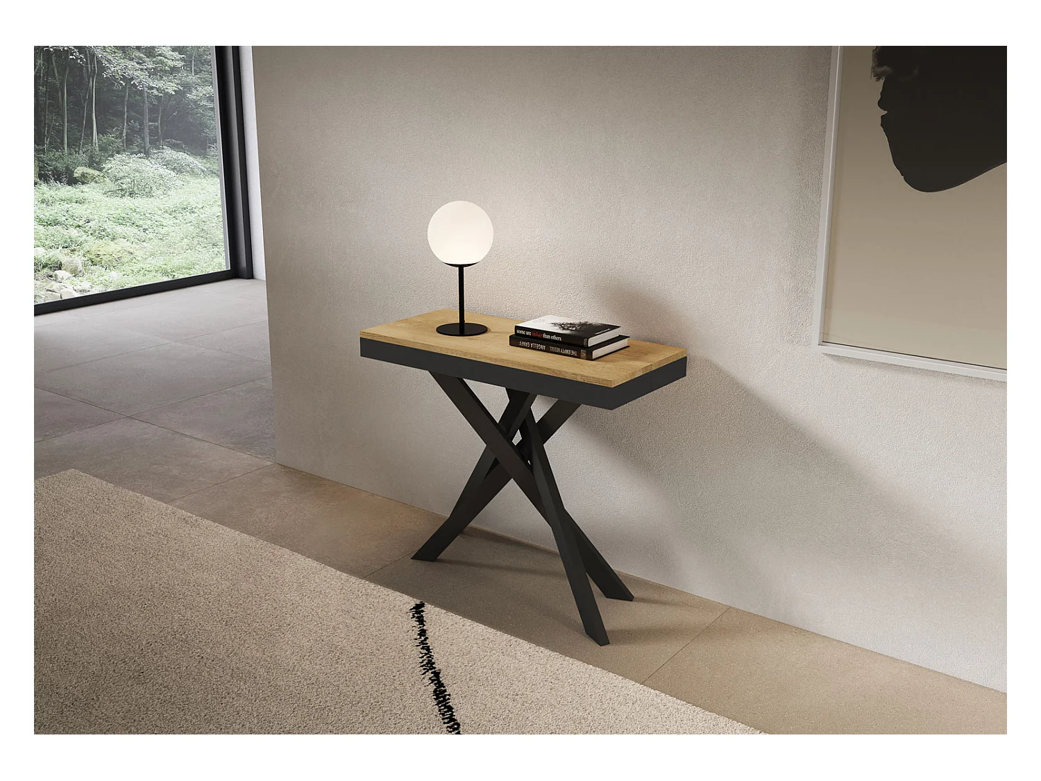 Console extensible 90x40/196 cm Saki Small Evolution chêne nature structure anthracite