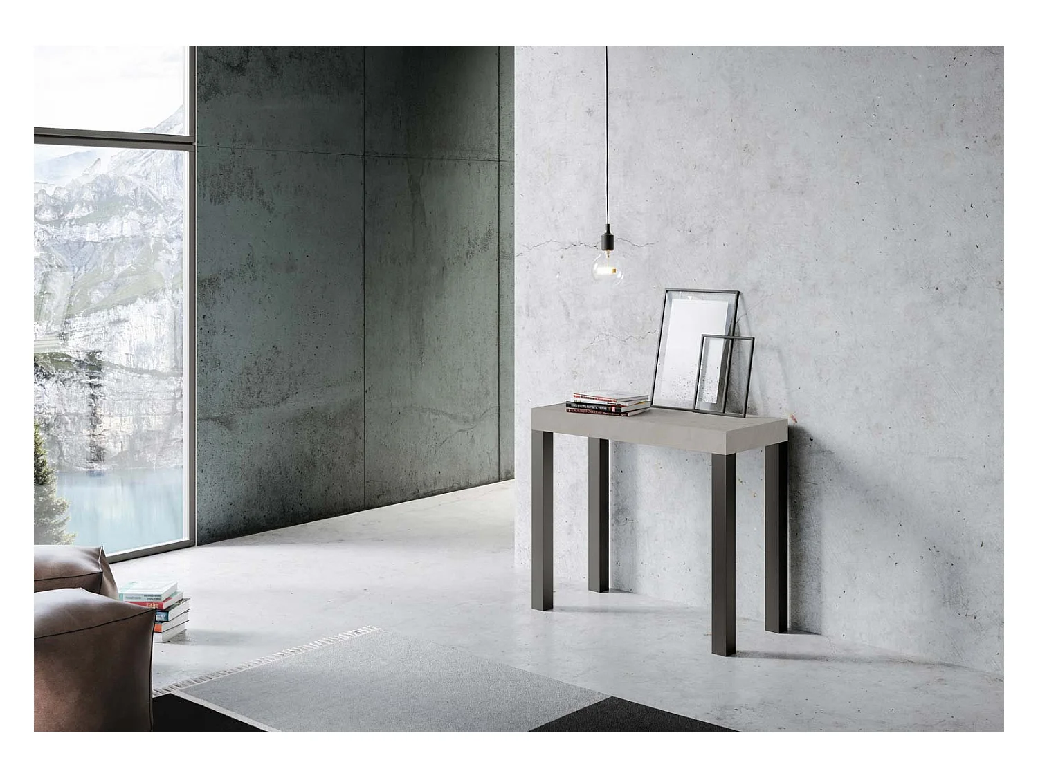 Console extensible 90x40/300 cm Tarax gris béton cadre anthracite