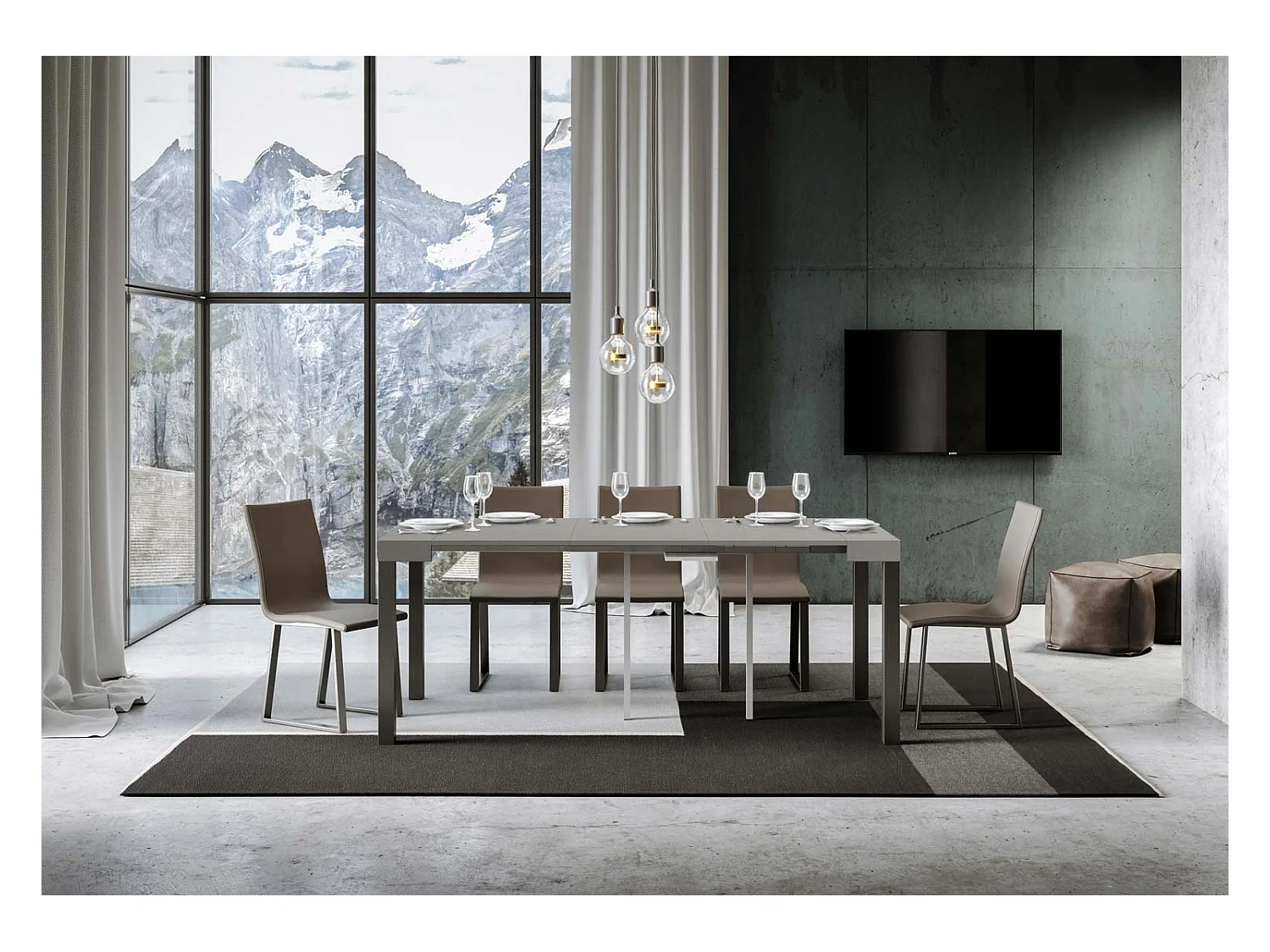 Console extensible 90x40/300 cm Tecno Gris Béton cadre Anthracite