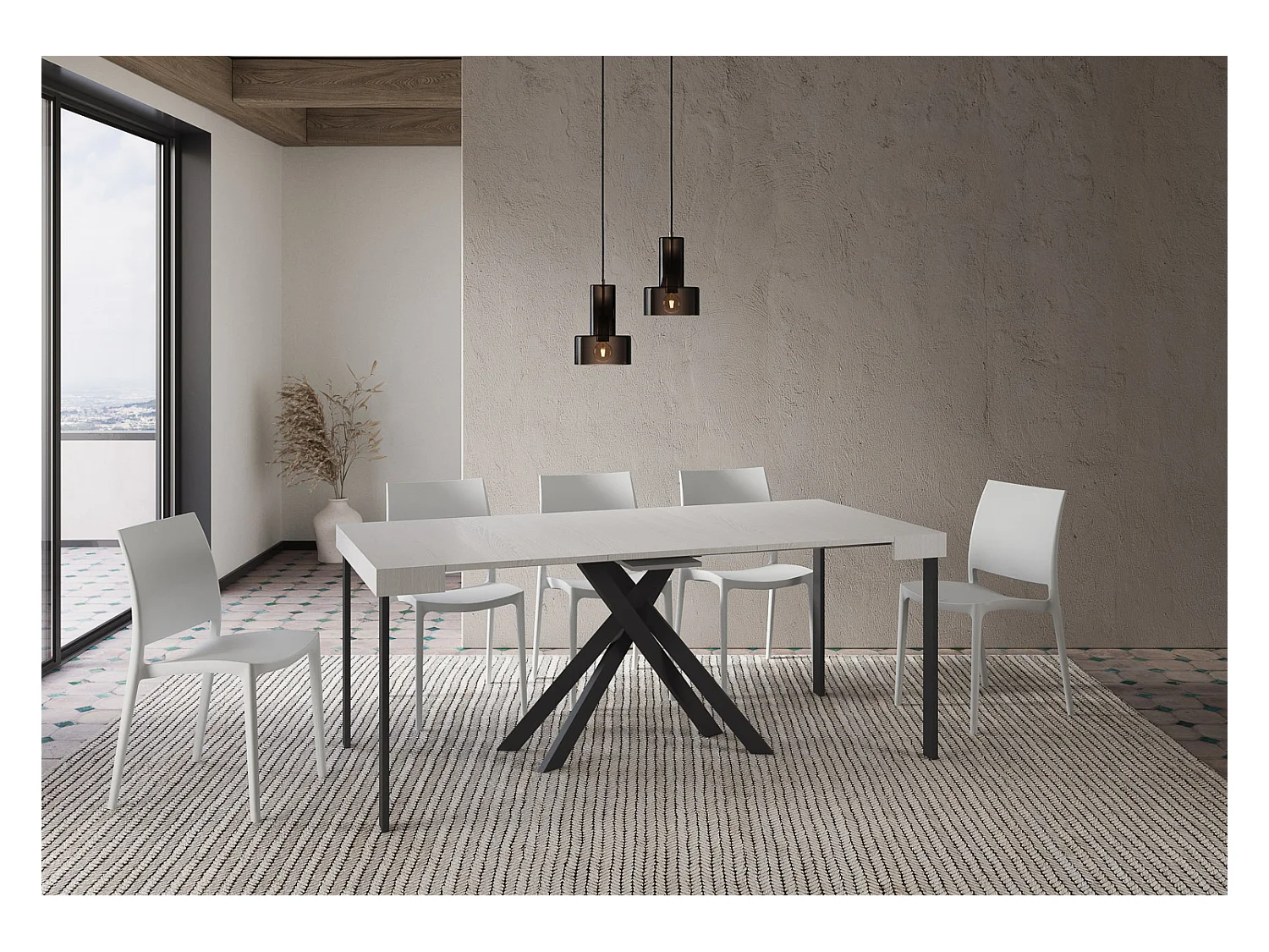 Console extensible 90x40/300 cm Krack frêne blanc pieds anthracite