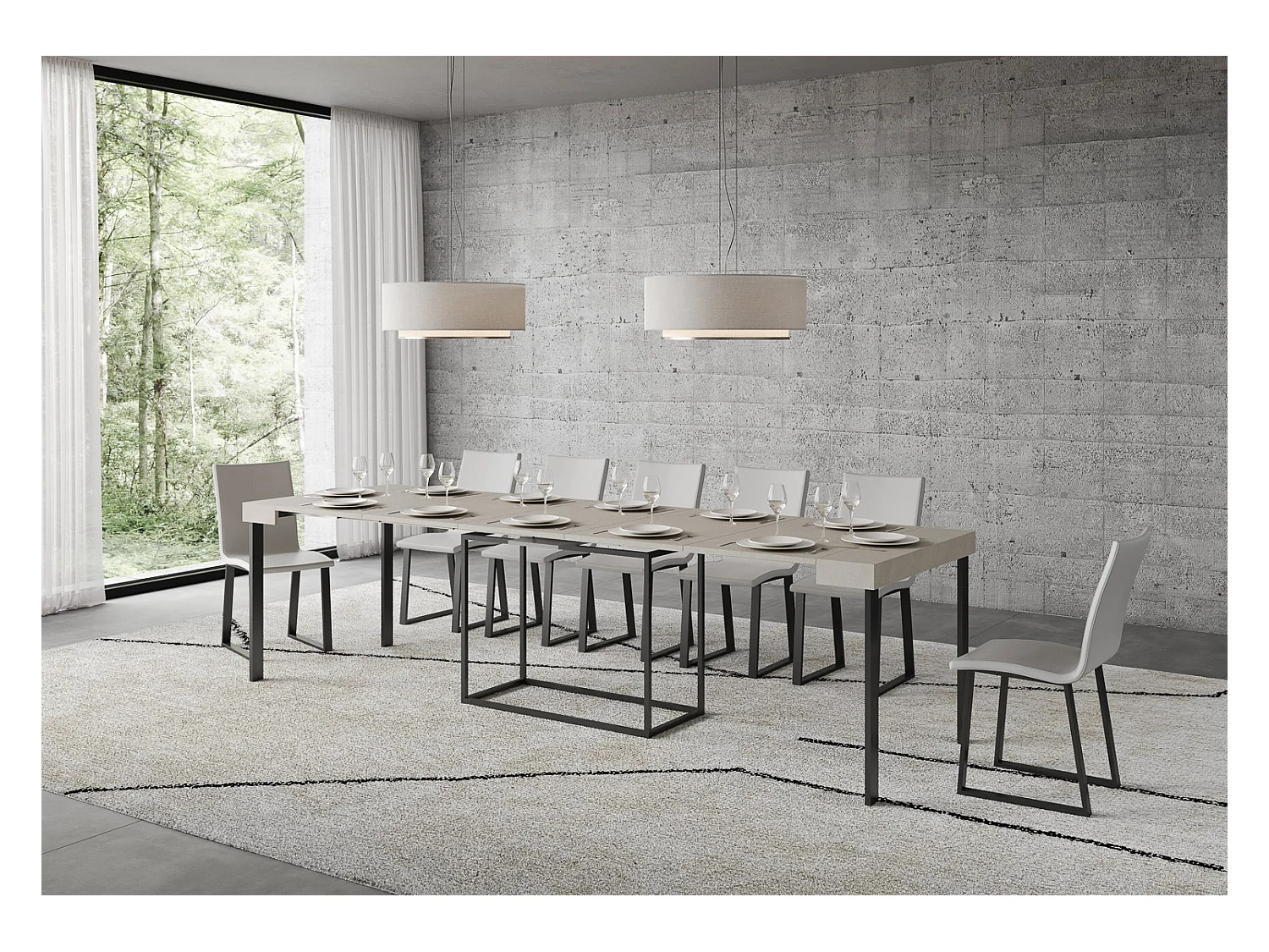 Console extensible 90x40/300 cm Tecno Gris Béton cadre Anthracite