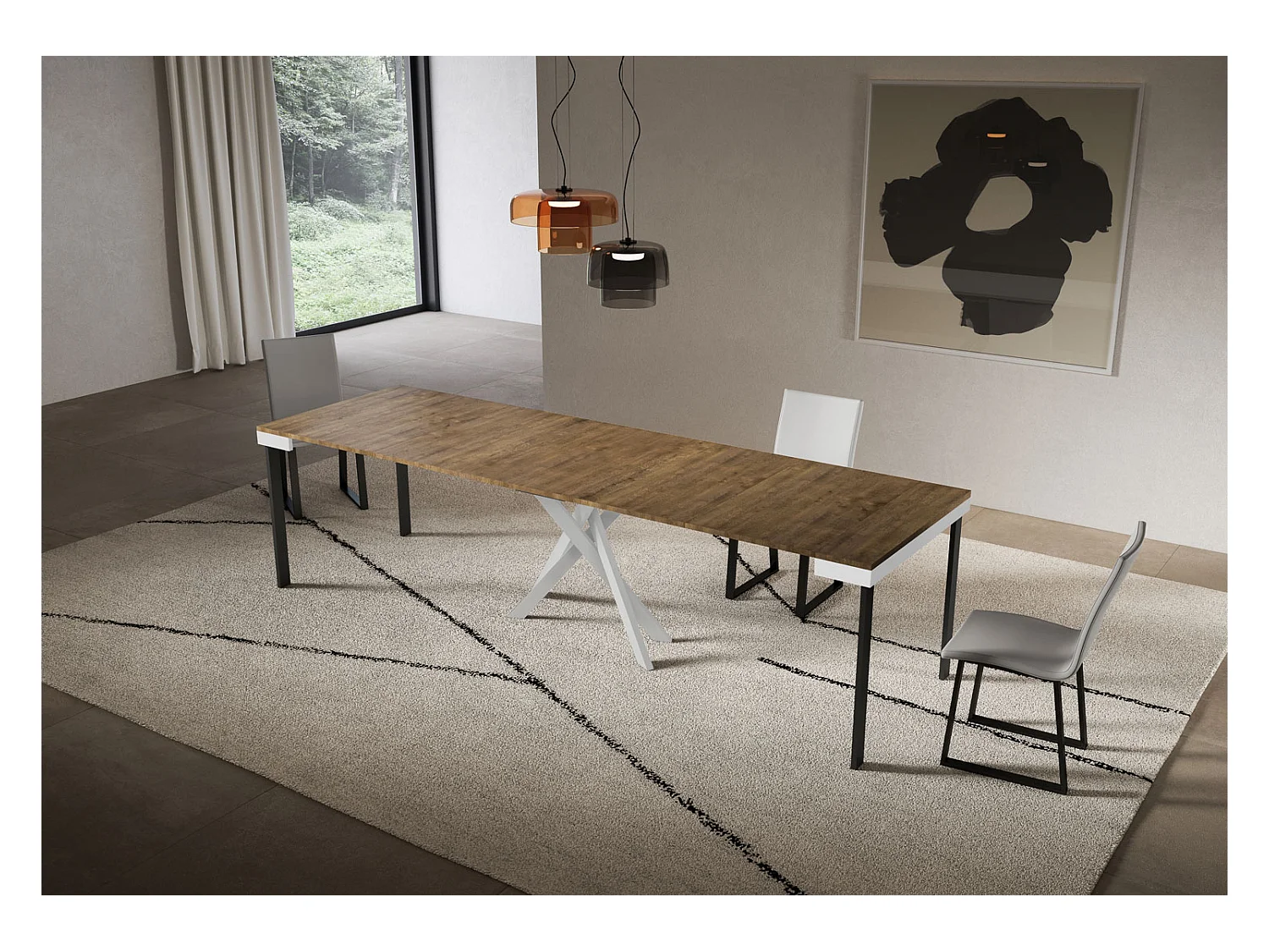 Console extensible 90x40/300 cm Saki Evolution noyer structure blanc