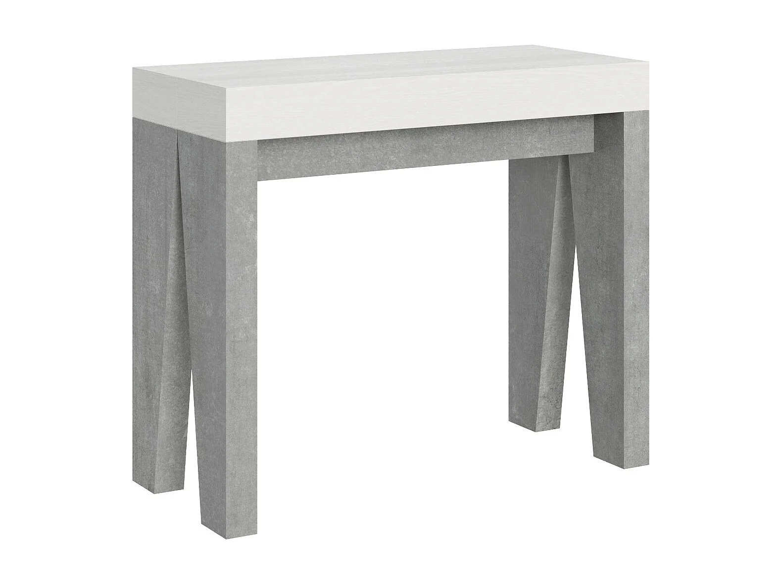Console extensible blanche et gris béton 40 à 300cm Ribo-4 pieds