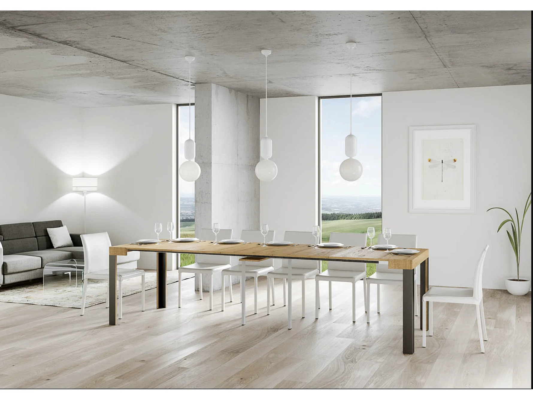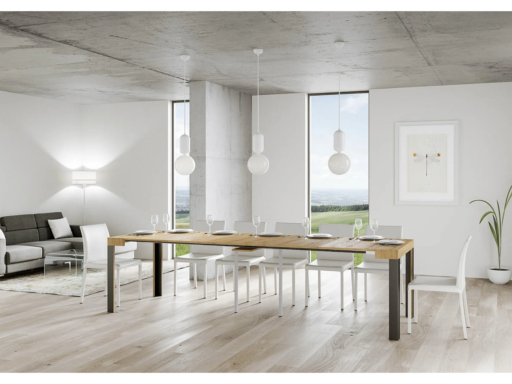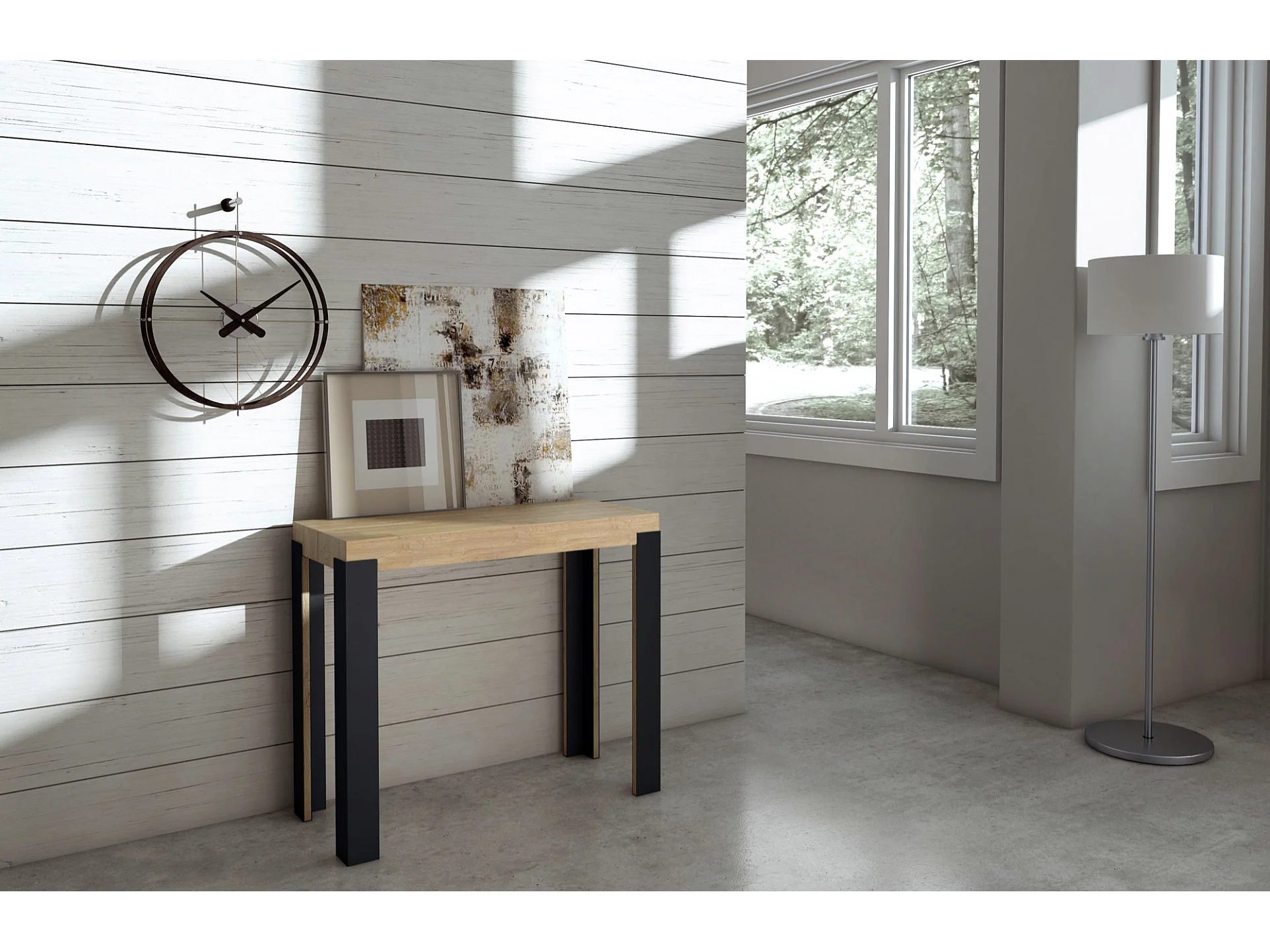 Console extensible bois avec 4 pieds bois et acier anthracite Liva-Couleur Naturel-4 pieds-3 rallonges