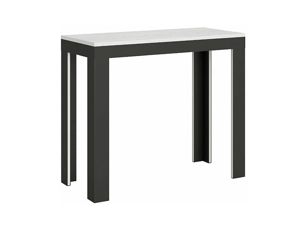 Console extensible bois et acier anthracite Monteros 90x40-196 ou 90x40-300-Couleur Blanc-Support 4 pieds-3 rallonges