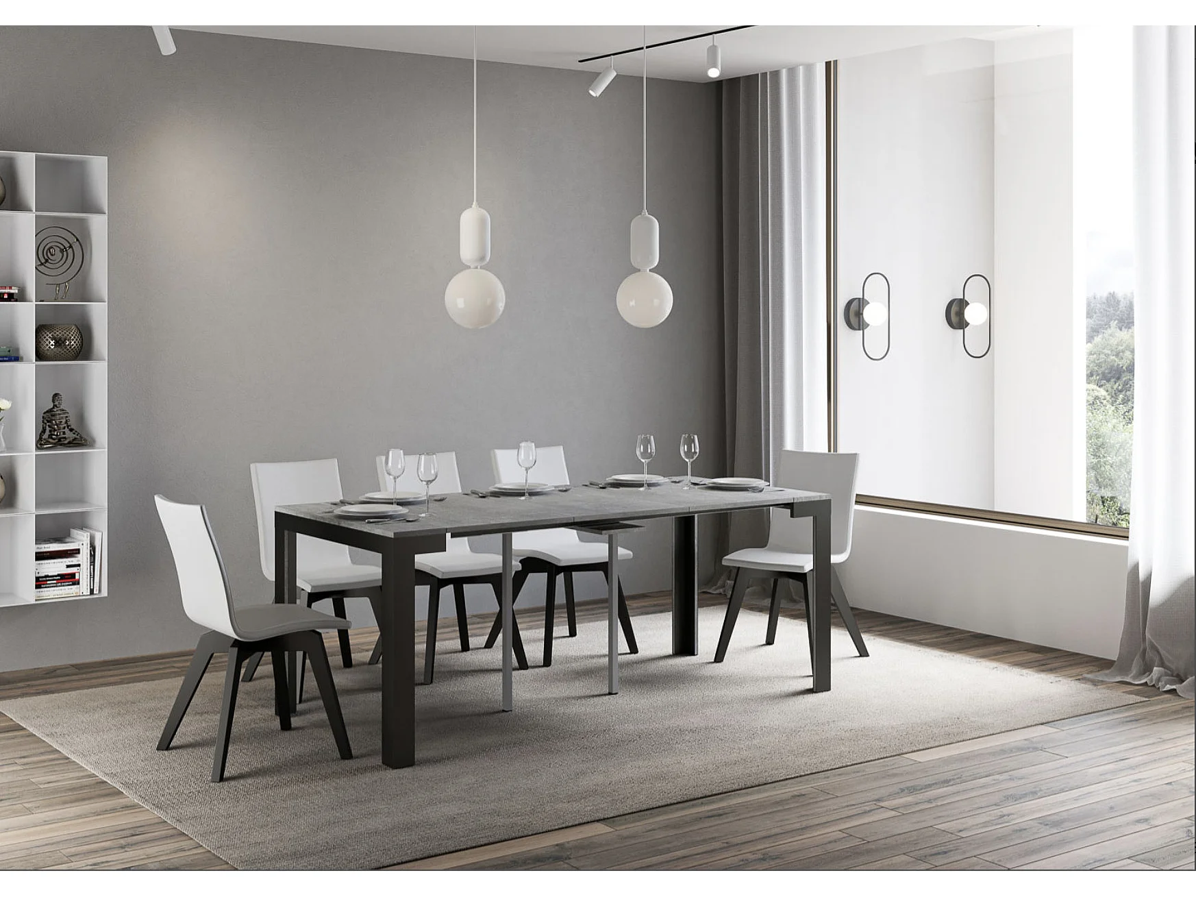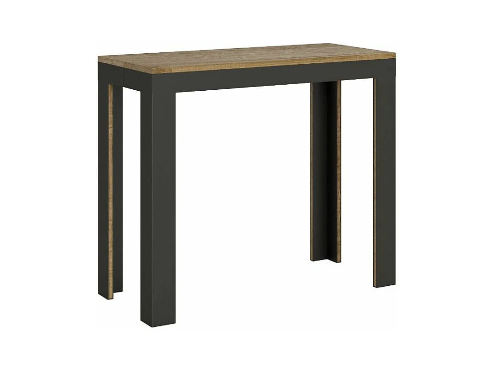 Console extensible bois pieds bois et acier anthracite Liva evolution-Couleur Gris ciment-Sur roulettes-3 rallonges