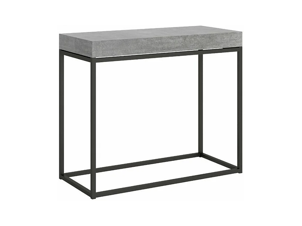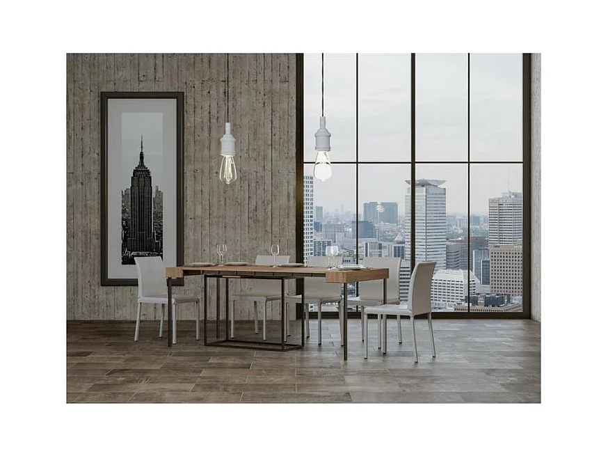 Console extensible bois et acier anthracite Elvira 90x40-196 ou 90x40-300-Couleur Naturel-Support 4 pieds-5 rallonges