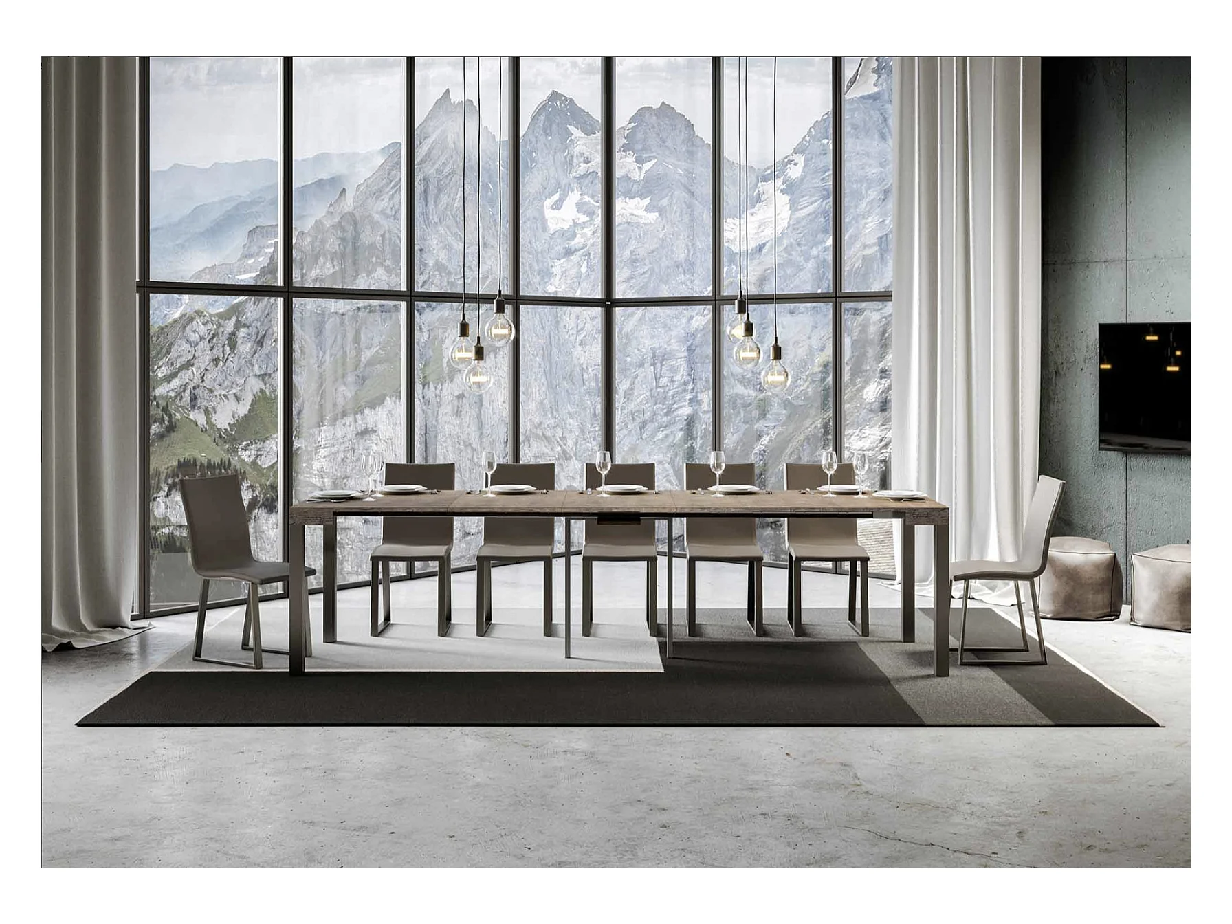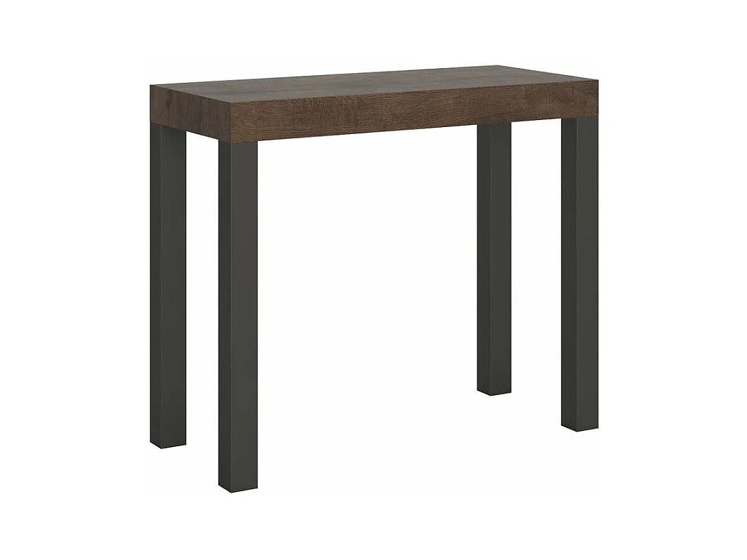 Console extensible bois et acier anthracite Elvira 90x40-196 ou 90x40-300-Couleur Marron-Support 4 pieds-3 rallonges