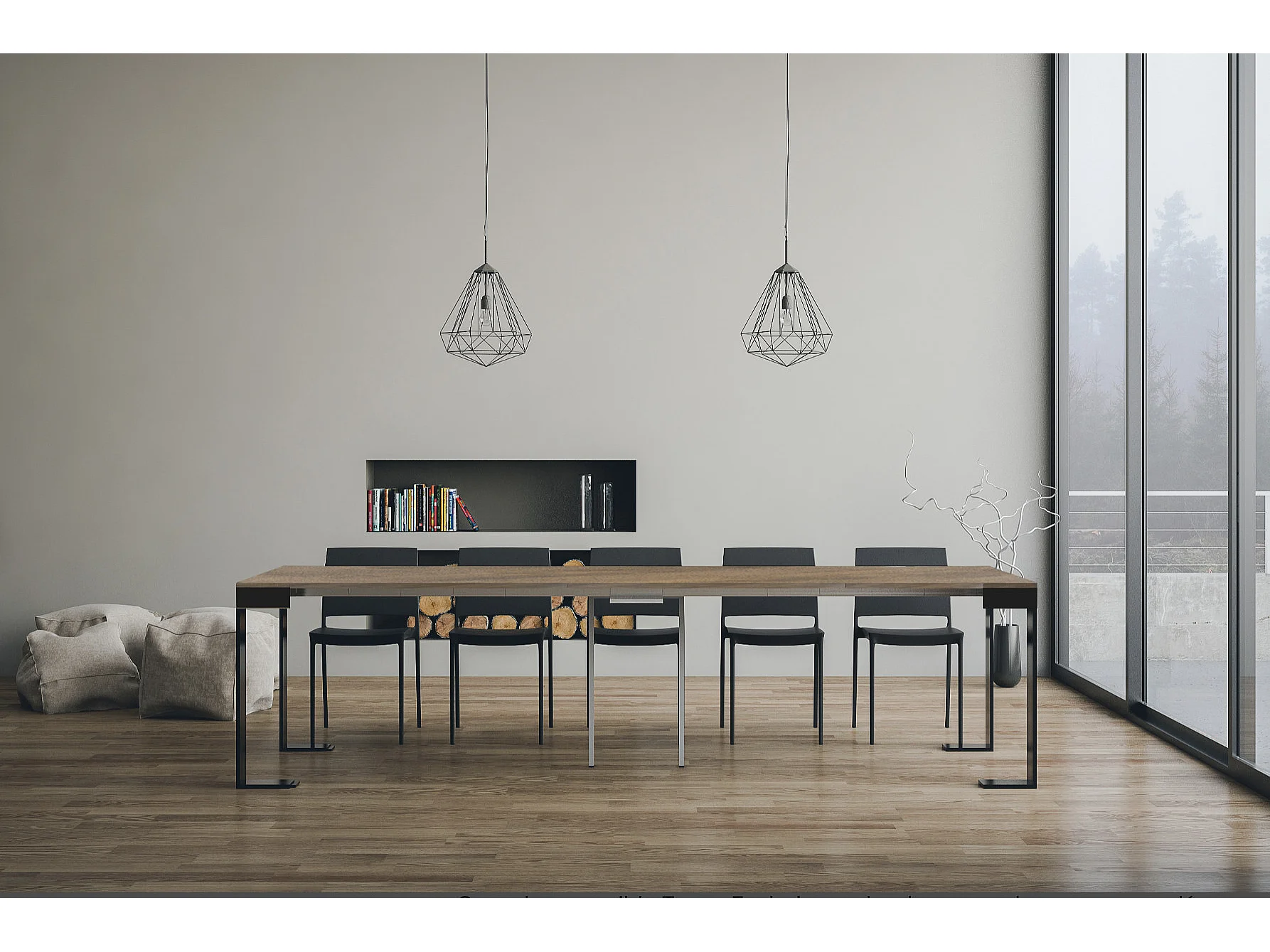 Console extensible bois et acier Tiroz evolution-Couleur Marron-2 pieds-5 rallonges