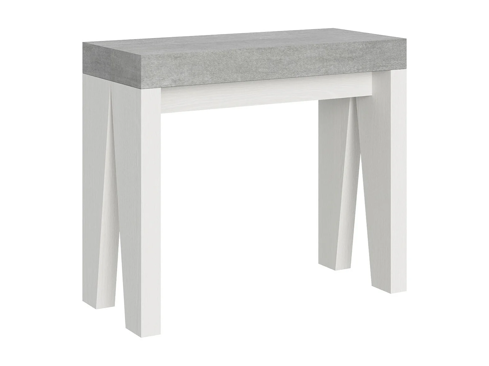 Console extensible gris ciment et blanc 40 à 196cm Ribo-4 pieds