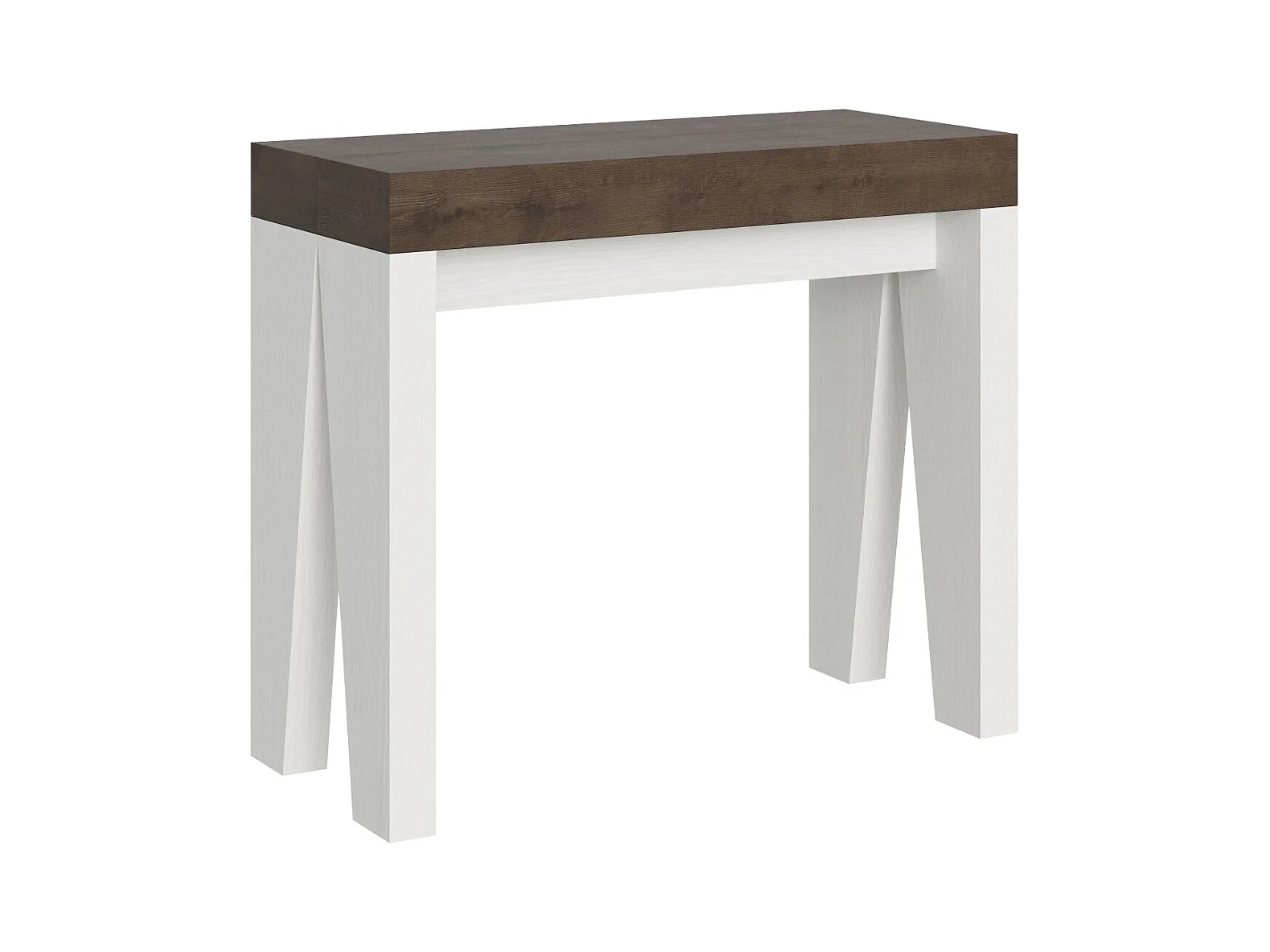 Console extensible bois noyer pieds bois blanc 12 personnes 40 à 300cm Naxo-Sur roulettes